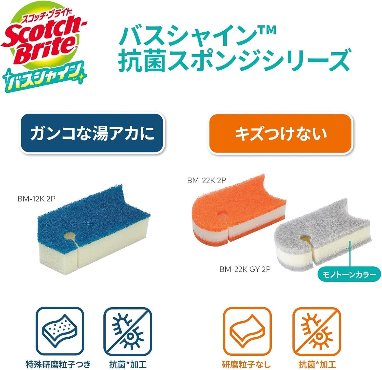 3M お風呂掃除 スポンジ 抗菌 ソフト グレー 2個 スコッチブライト バスシャイン BM-22K GY 2P