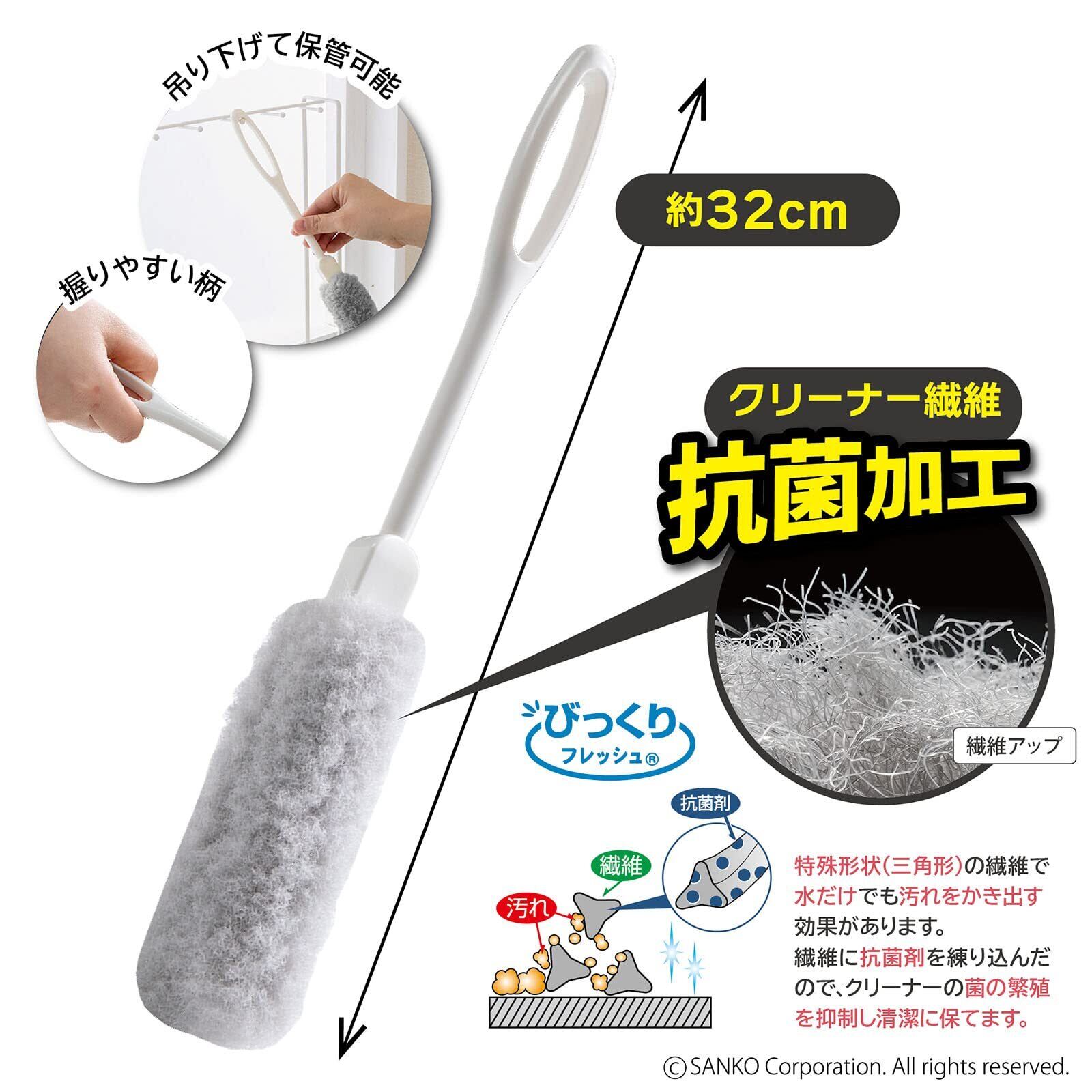 【日本製】サンコー ブラシ マグボトル洗い 水筒 ミニ ボトル タンブラー 哺乳瓶 水だけでも汚れが落とせる特殊繊維 コップ 洗い ブラシ 抗菌加工 びっくりフレッシュ グレー BI-15