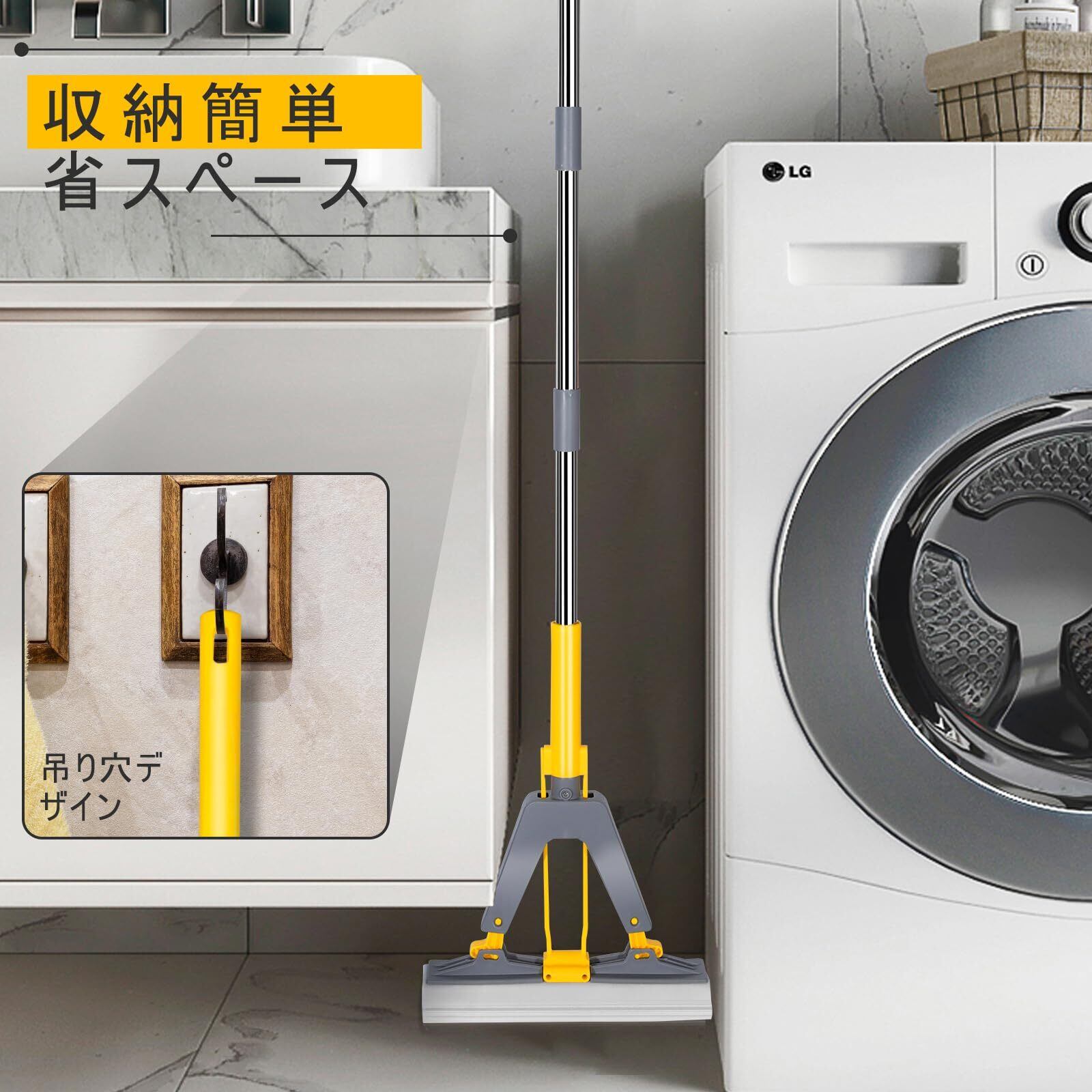 【吸水性&洗濯簡単】モップは高い引っ張り強さで高い吸水性を持ちます、水をすばやく簡単に絞り出し、操作を簡単にします。ご利用されたモップは洗濯も簡単です、ハンドルレバを何回に引き上げ、引き下ろしだけで、スボンジの水を絞りで完了します。