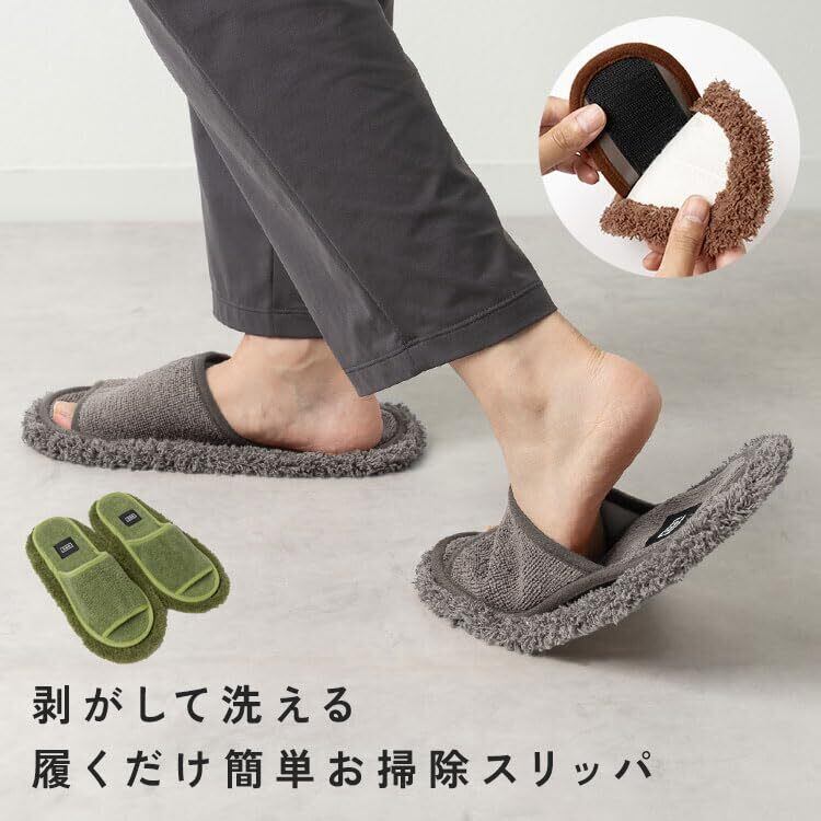 【ながら掃除スリッパ】履いて歩くだけでゴミを絡めとってフローリングをきれいにお掃除。履き心地もよく季節関係なくご使用いただけます。