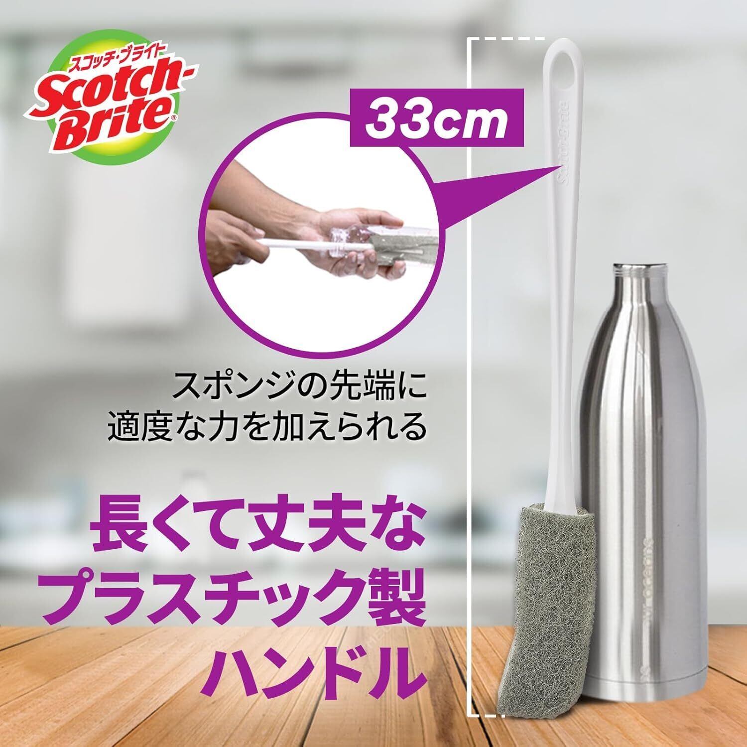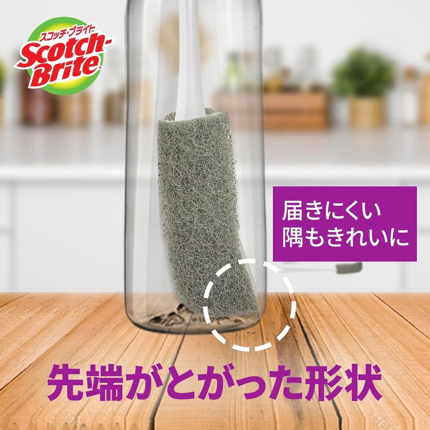 3M スコッチブライト すごい ボトル洗い ボトルスポンジ 水筒洗いブラシ タンブラー ボトル洗浄 グレー 本体+取替1個