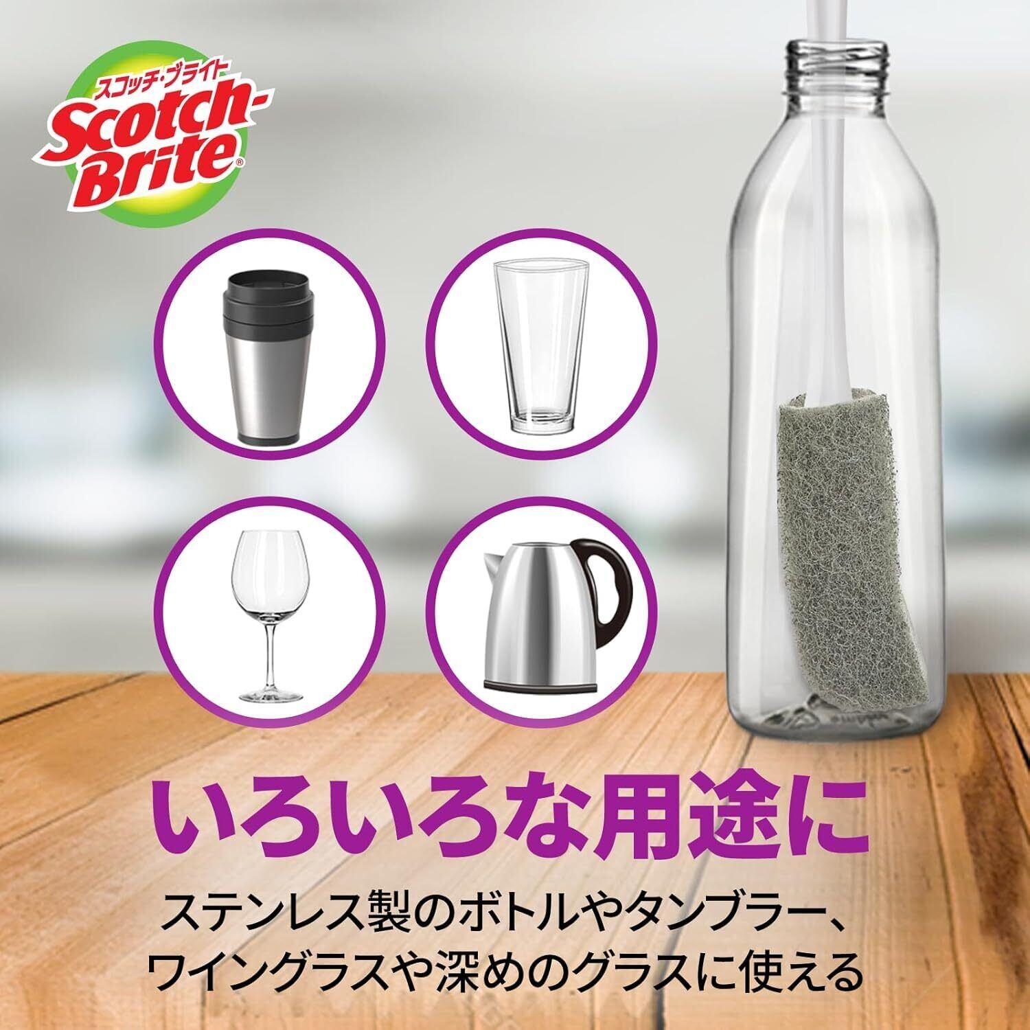 【人気商品】 3M スコッチブライト すごい ボトル洗い ボトルスポンジ 水筒洗いブラシ タンブラー ボトル洗浄 グレー 本体+取替1個