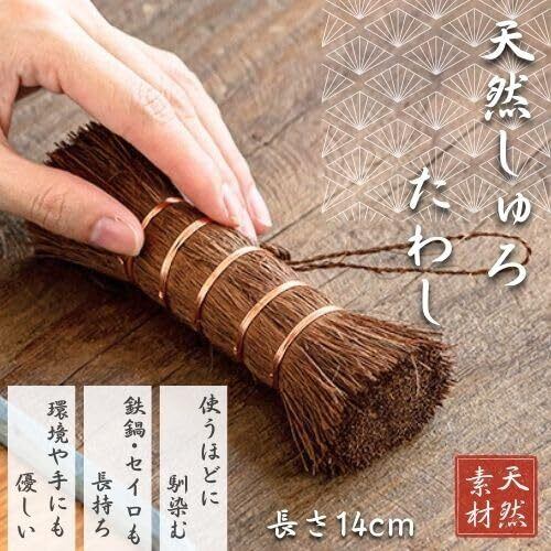 天然素材・棕櫚を使用したしゅろたわし。鉄フライパンや鉄鍋、スキレット、まな板、包丁、陶器などキッチン用品全般に対応した棒たわしです。シンプルな和風デザインでキッチンを彩ります。