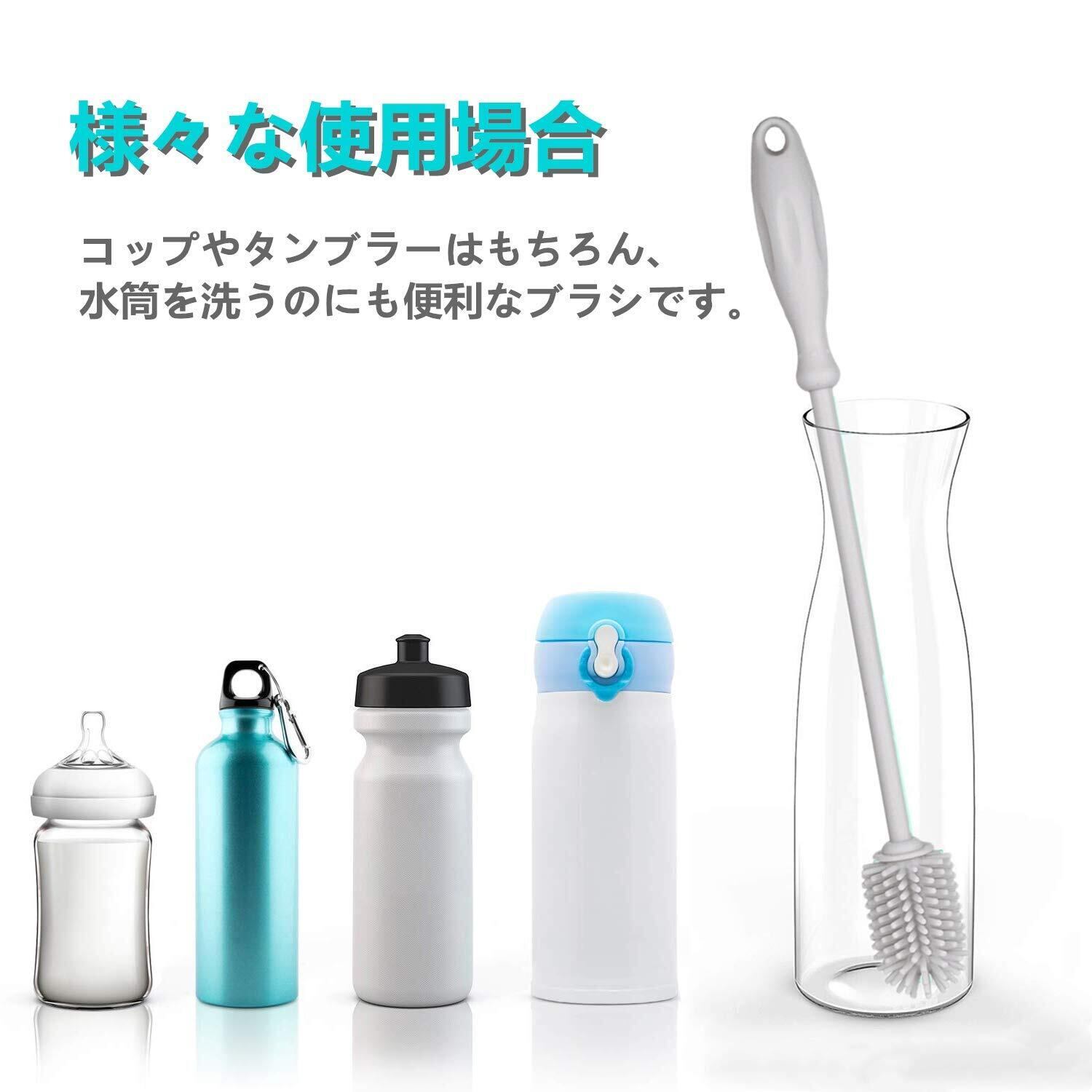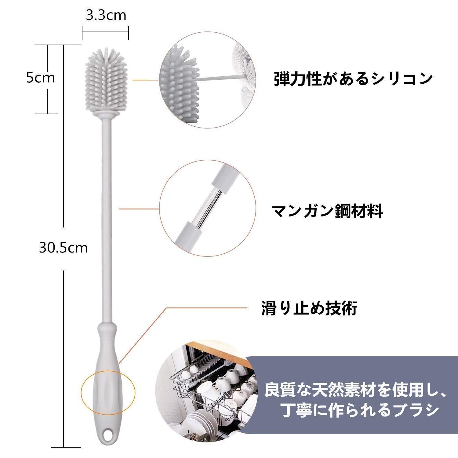 Uervoton ボトルブラシ シリコン製 30.5cm 長柄 抗菌 ボトル洗い コップ ステンレスボトル ペットボトル 洗浄 水筒 掃除 哺乳瓶 グレー