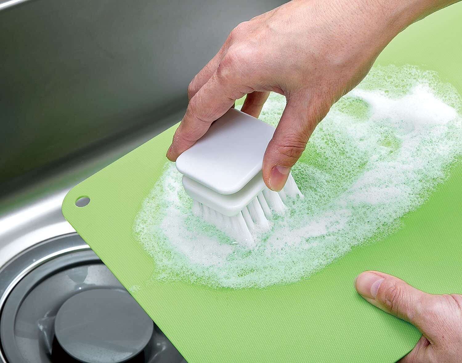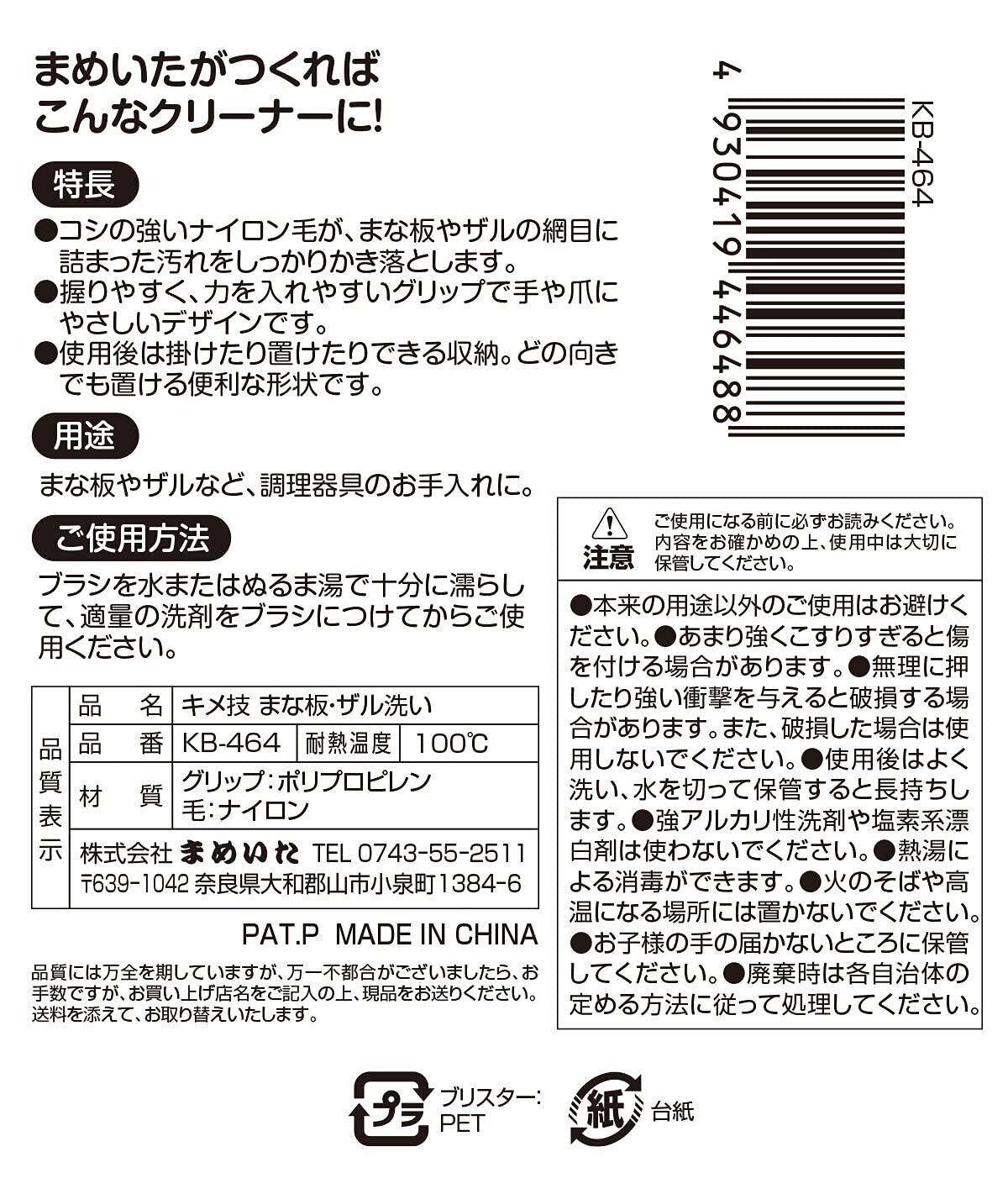 まめいた(Mameita)マメイタ キッチンブラシ ホワイト 幅5×奥行5.5×高さ4.8cm まな板 ザル洗い 収納 困らない 置ける 掛ける 持ちやすい グリップ キメ技 KB‐464