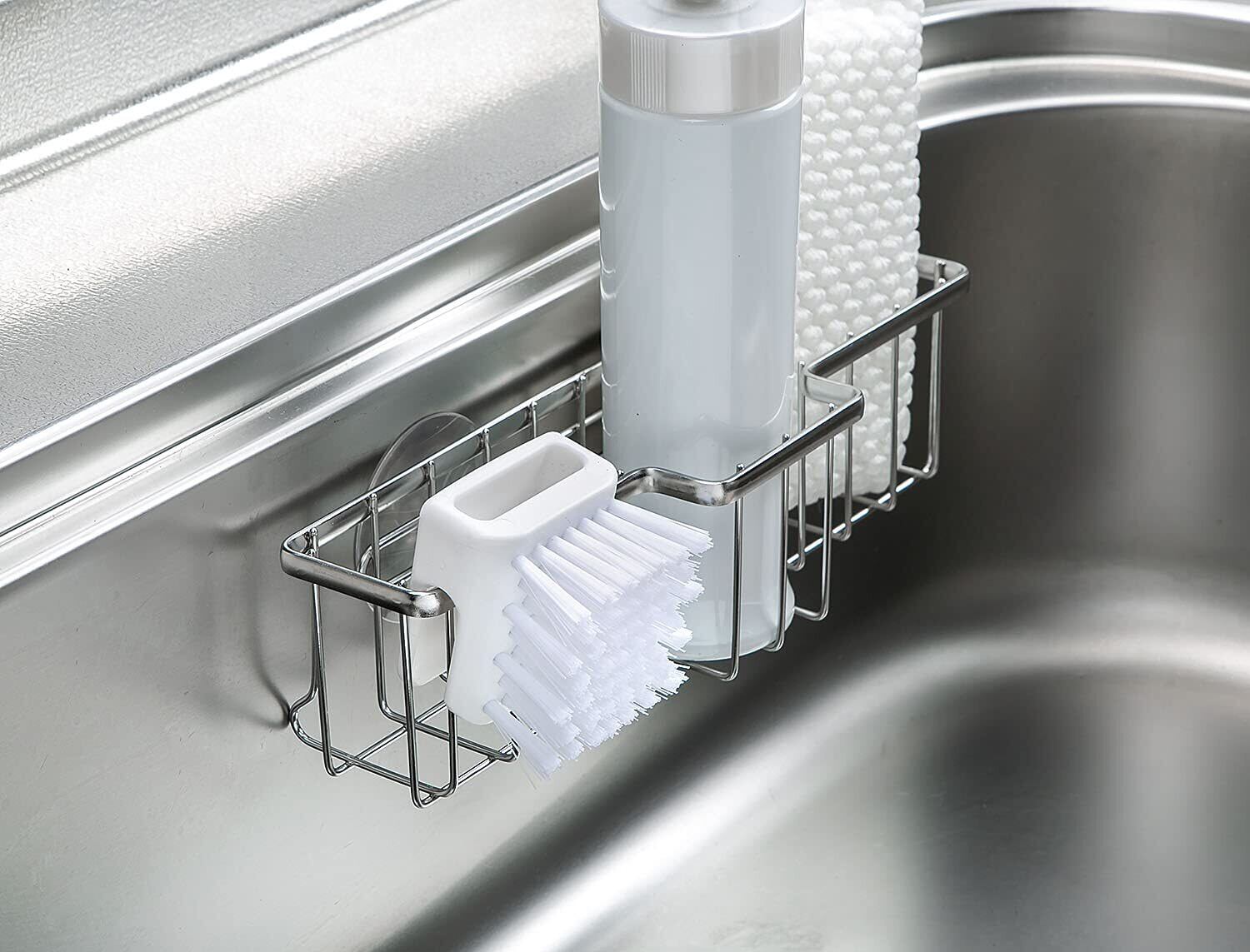●どんな向きでも置ける収納に困らないキッチンブラシ。
