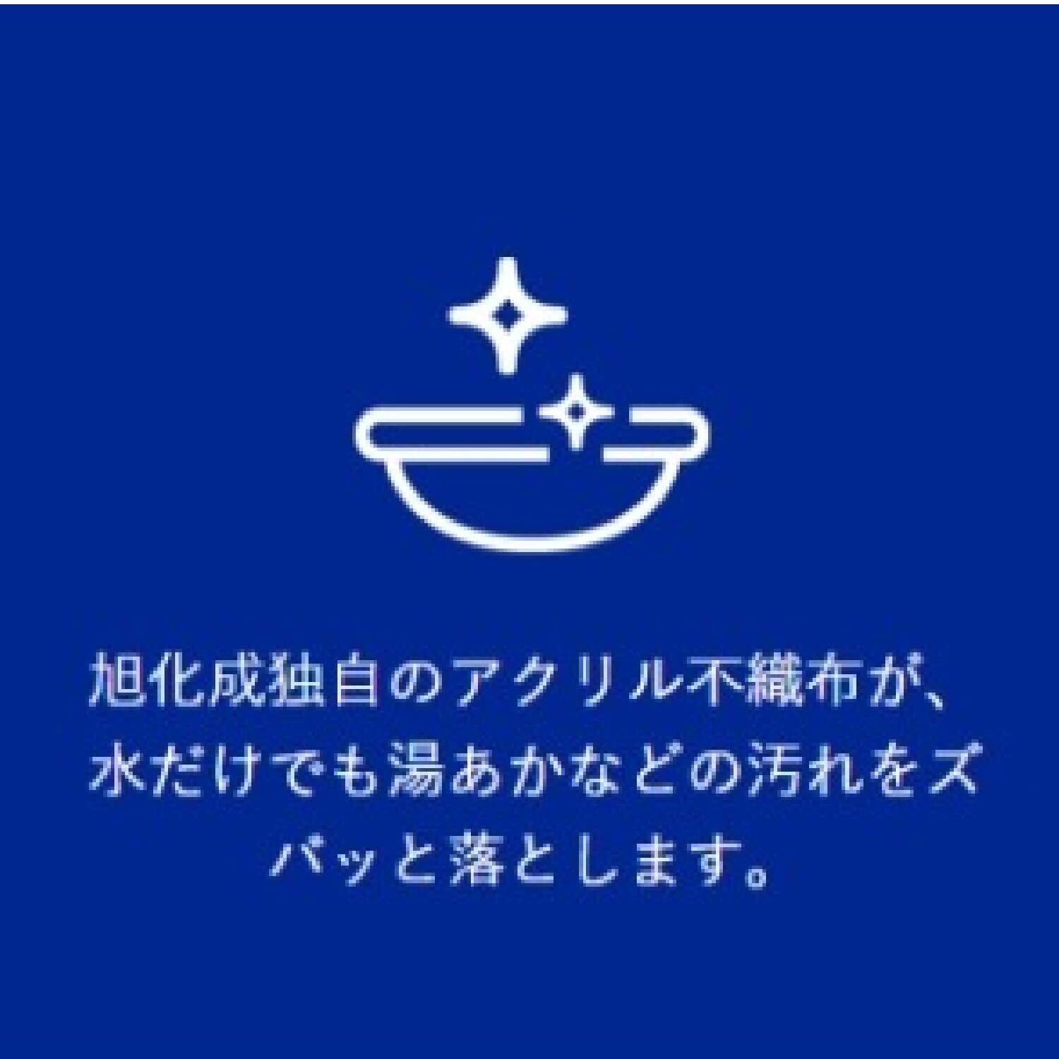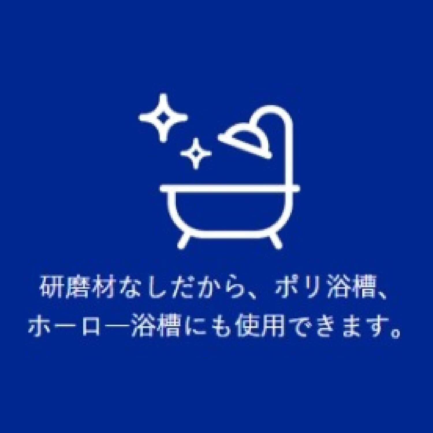 旭化成独自のアクリル不織布が、水だけでも浴槽の湯あかの「ザラつき」や「ヌメリ」を落とします。/研磨材なしだから、壁や床、鏡にも安心して使えます。/形状にくびれがあるので、バス専用の大き目なサイズでも持ちやすく、溝や曲面にもフィットするので、しっかり洗えます。/中間層に脱膜スポンジを使用し、水切れを良くしています。/自立するので、置き場に困りません。