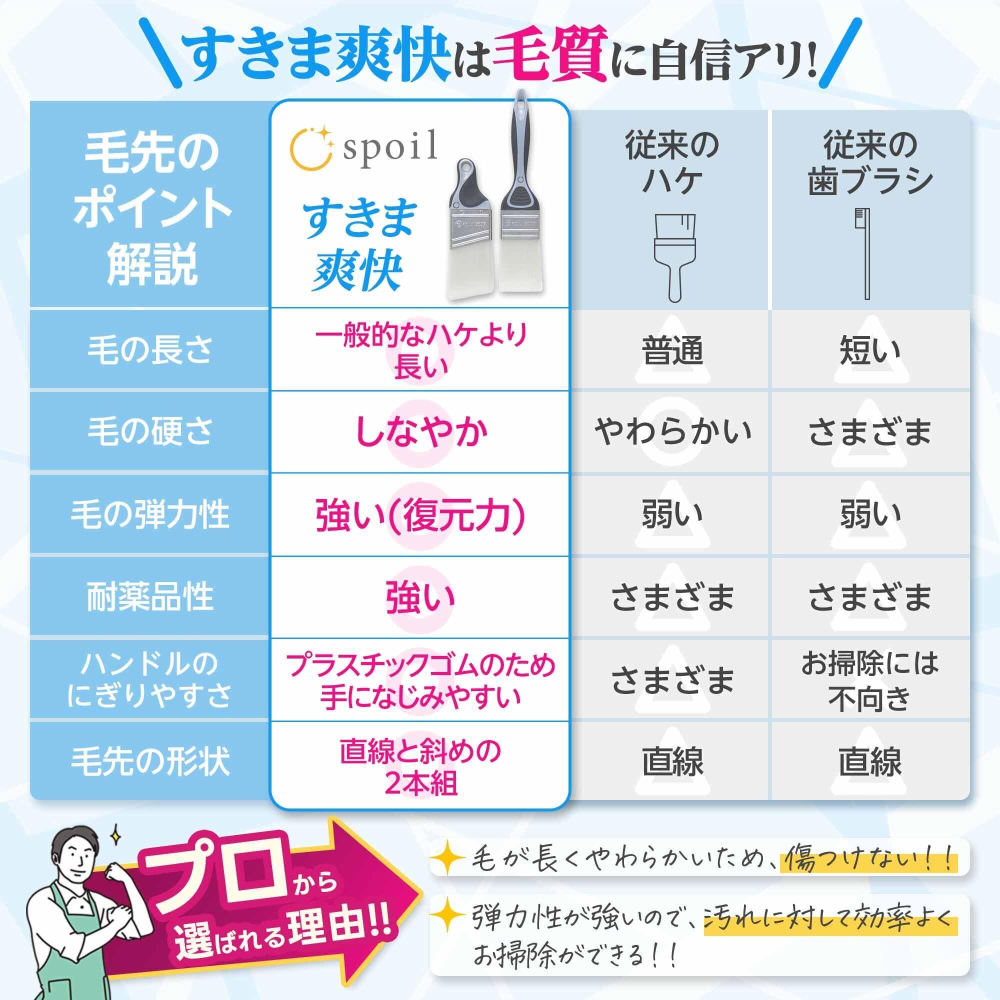 【特価セール】spoil すきま爽快 お風呂掃除 ブラシ【ハウスクリーニング技能士監修】 国家資格 (2本セット) 蓋 バス 用品 浴室 浴槽 グッズ 道具 溝 汎用 埃取り