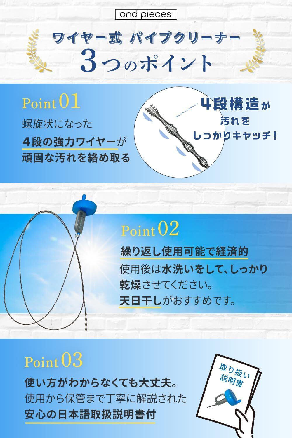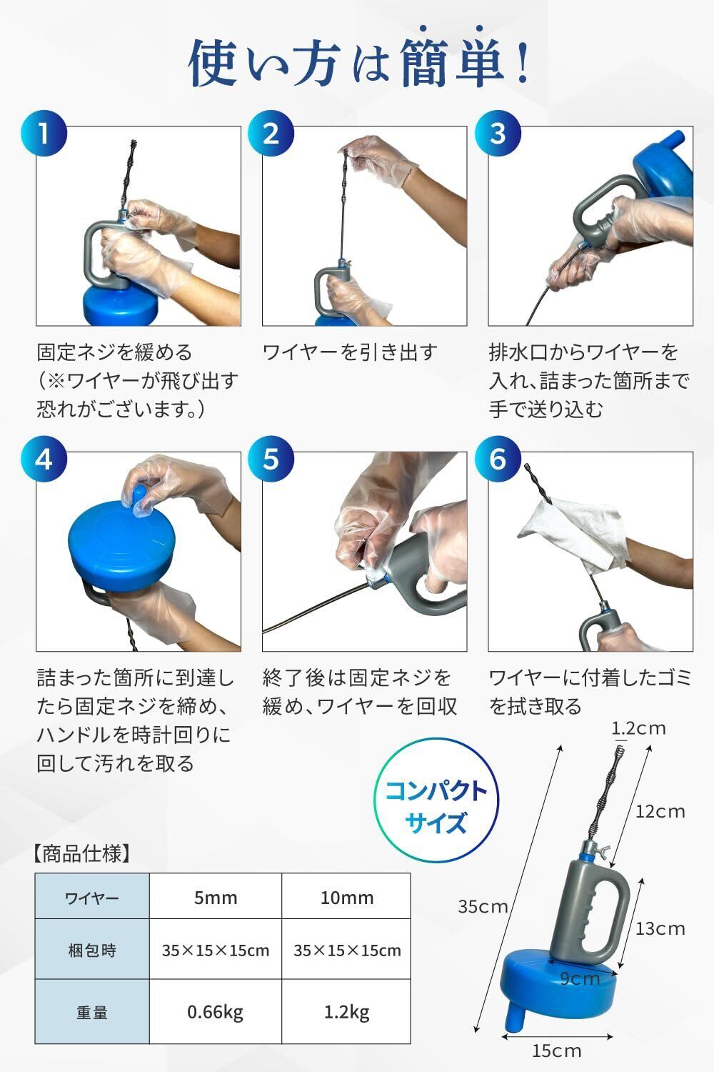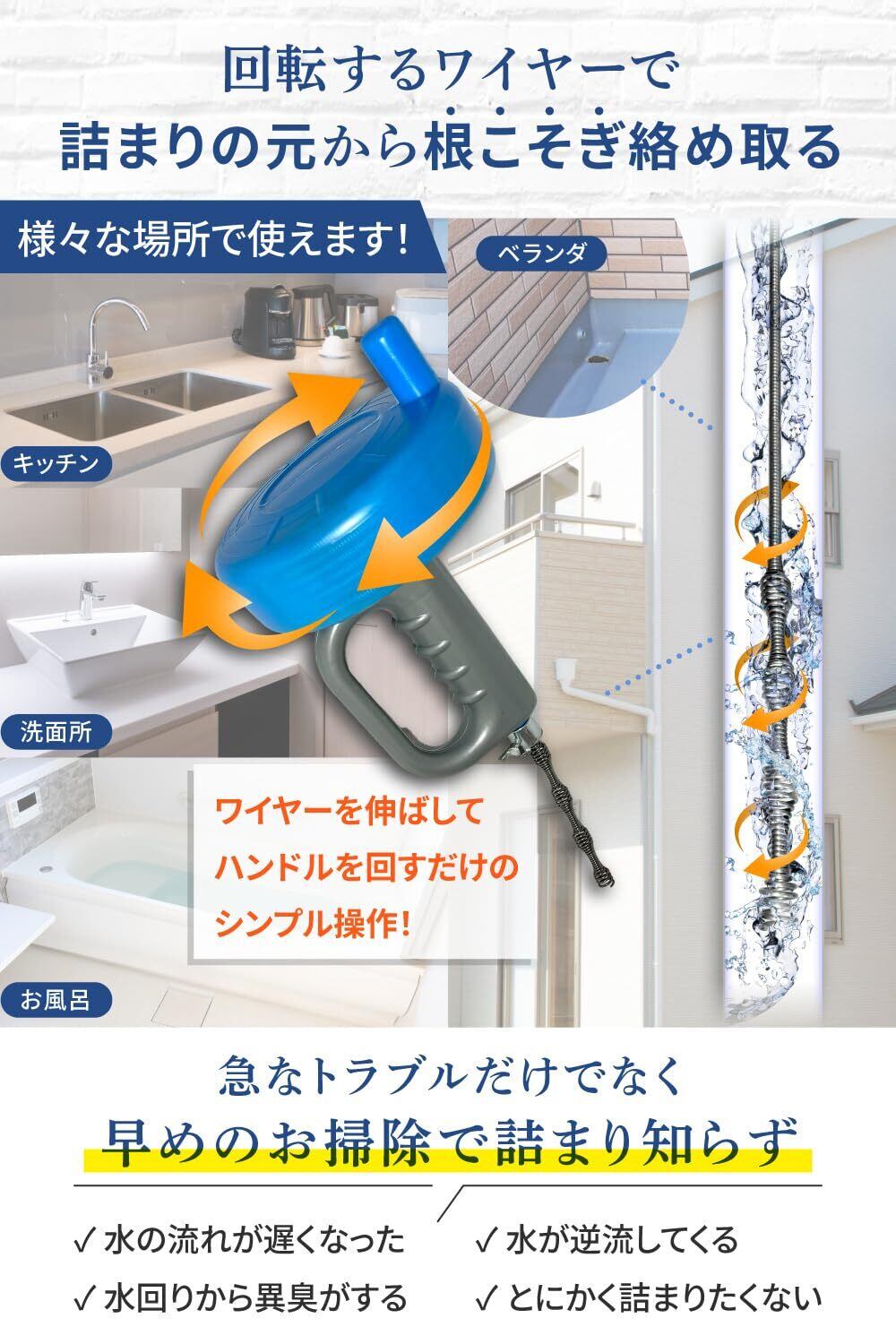 【業界最高品質の高強度ワイヤー】独自設計の高強度ワイヤーがつまりの原因を絡め取り排水溝の詰まりをスルッと解消!使用後はワイヤーを洗浄し防錆処理を行った後、清潔に保管できます。使用・保管方法の説明書付きです。