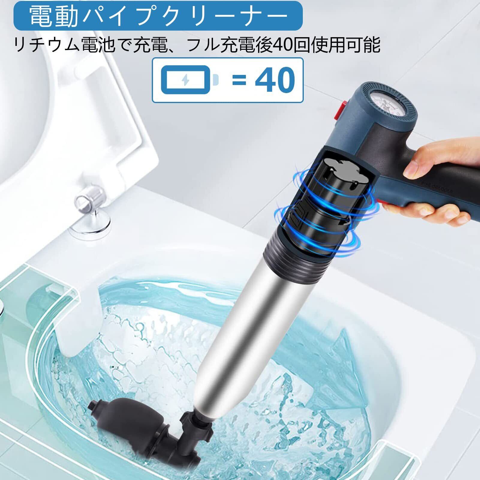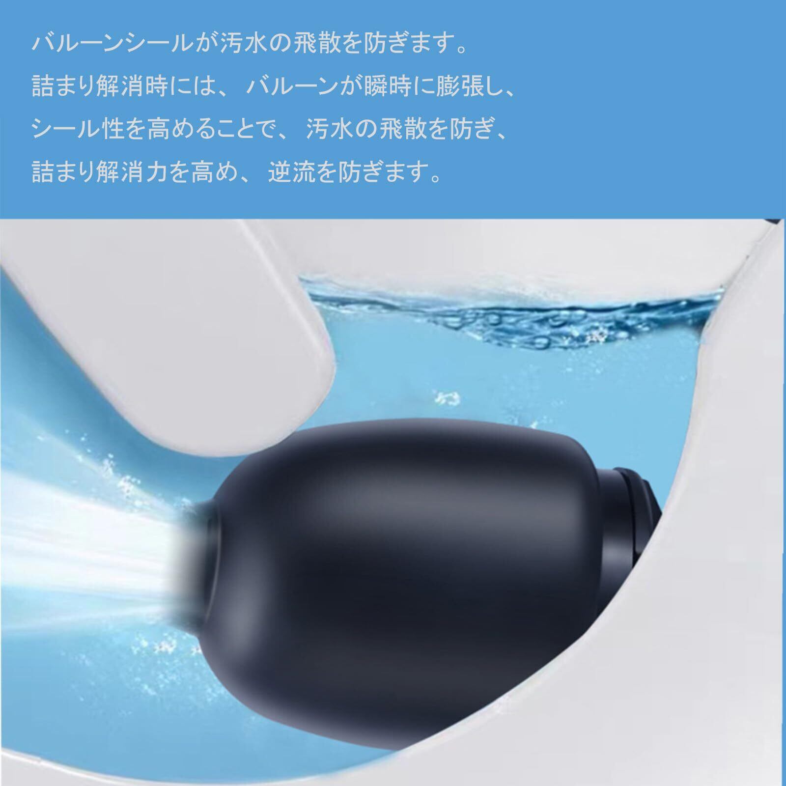 【電動式 トイレつまり解消道具】従来の手動タイプと比較して、より効率的で便利であり、お年寄りや女人でも手間をかけずに手軽にご使用いただけます。使い方は簡単です。2回ボタン押すだけ、一回目押して空気を溜めて、二回目押しつまり解消。(日本語説明書付き)