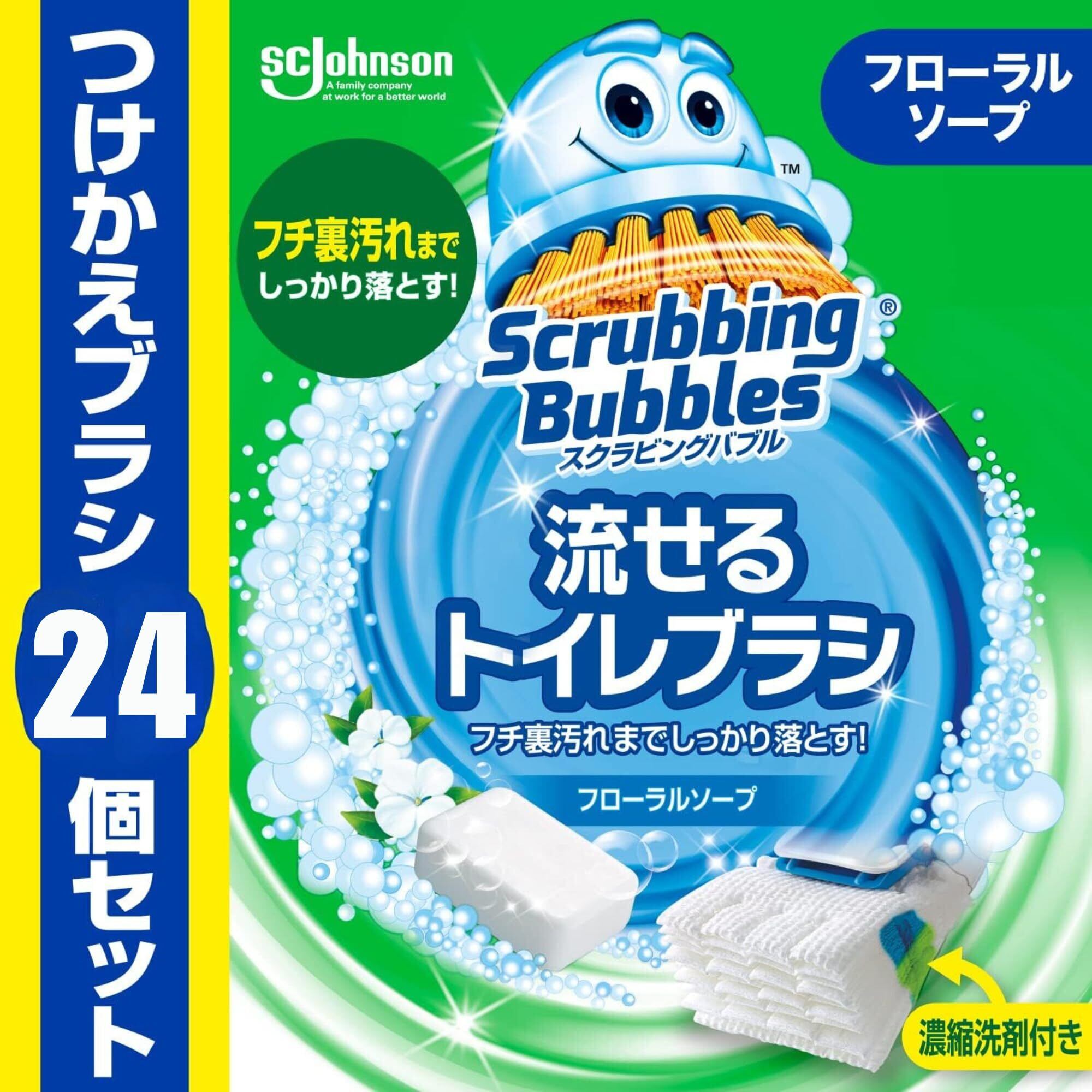 スクラビンクバブル 流せるトイレブラシ 付け替え 24個 フローラルソープの香り 黒ズミ トイレブラシ 使い捨て 洗剤 まとめ買い & SOLOFISクリーナー (24個)