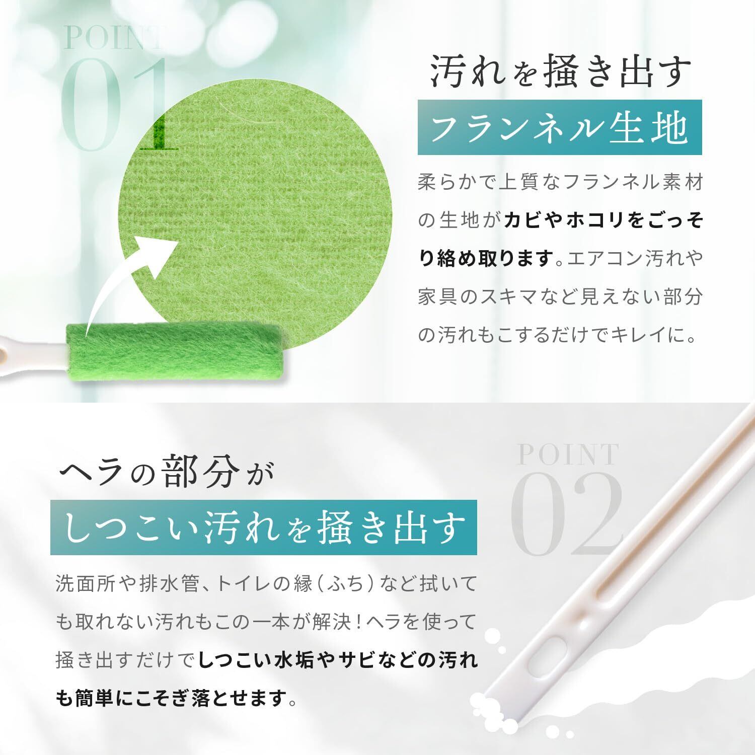【整理収納アドバイザー 推薦】LeLante の エアコン掃除 ブラシ は毎日のお掃除を簡単でラクにして頂くために日本企業が商品開発を行っています。上質なフランネル素材を採用することで、これまで手の届かなかった狭いエアコン ファン (シロッコファン)の隙間の奥まで届きカビ・ホコリの汚れを絡め取ります。