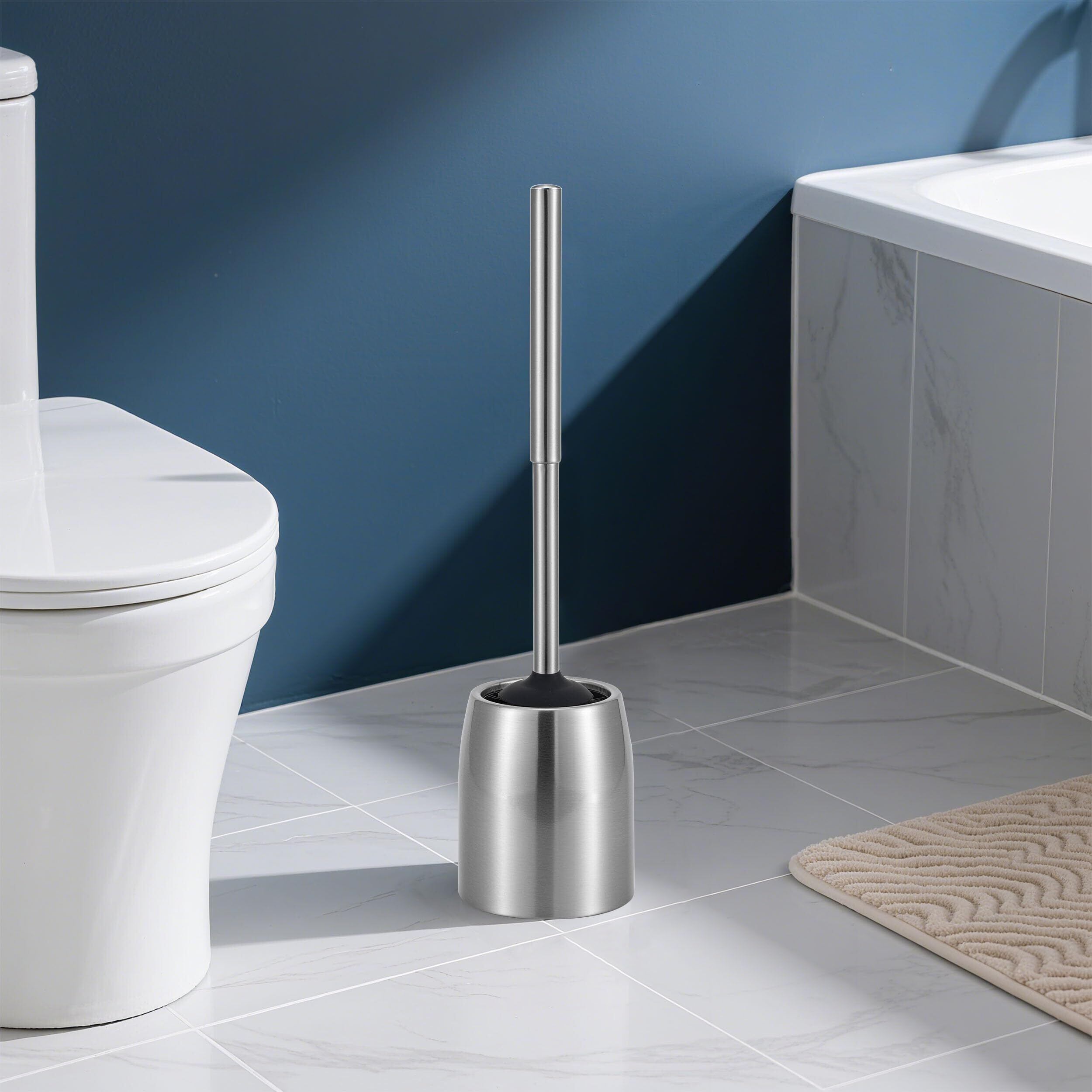 【ステンレストイレブラシとホルダー】本体は高級感あふれるステンレス製。水回りでも錆びず、耐久性に優れています。剛毛付きシンプルでモダンなシルバーカラーは、バスルームの雰囲気を損なわず、おしゃれなインテリアとしてもご利用いただけます。清潔感のある輝きが、ずっと持続します。