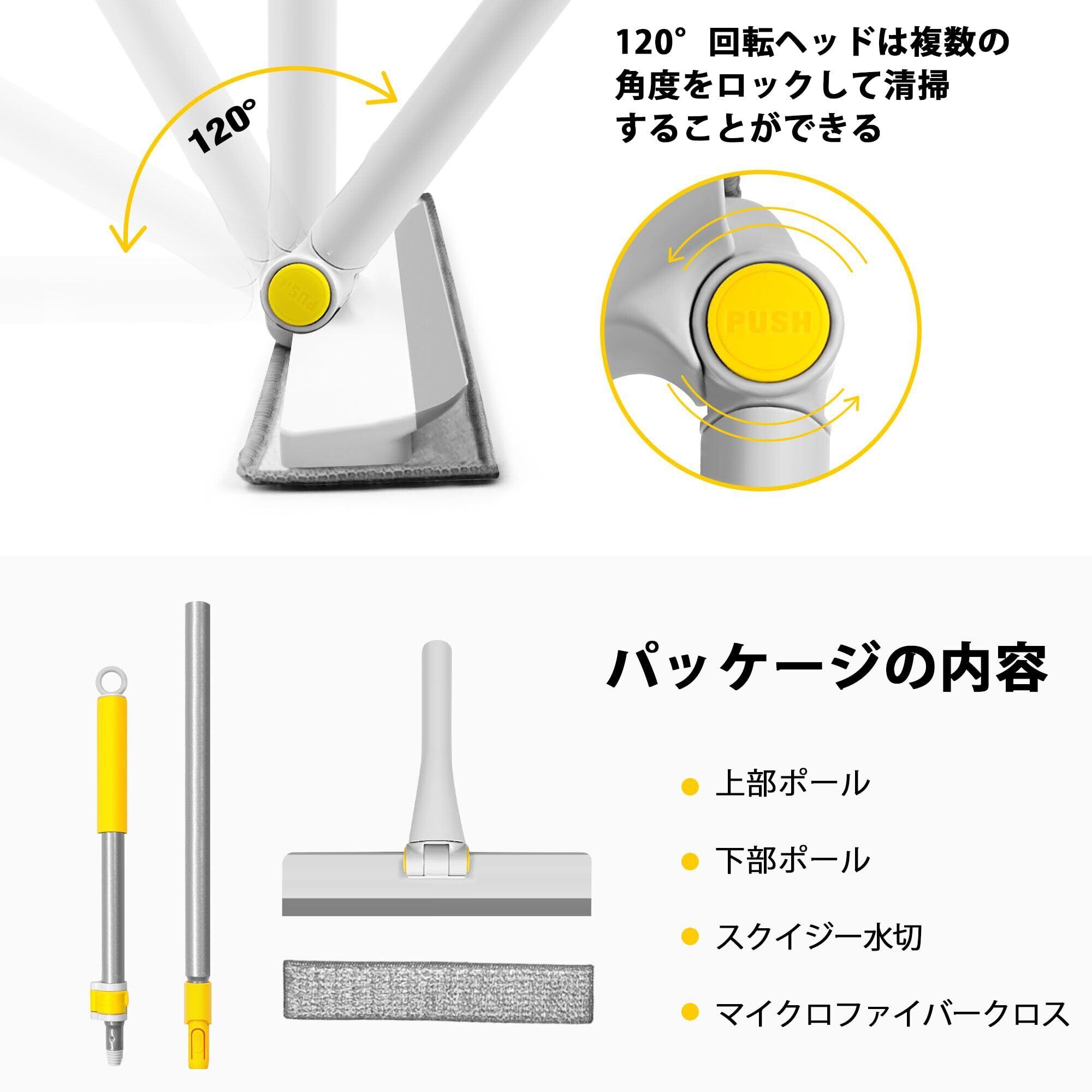 120°回転ヘッド:ボタンを押して、水キリワイパーにのヘッドを適切な角度に回転させ、放して所定の位置にロックします。そして、アーチ型の窓、梁の窓、バーモントの窓、魔女の窓を簡単に掃除することができます。