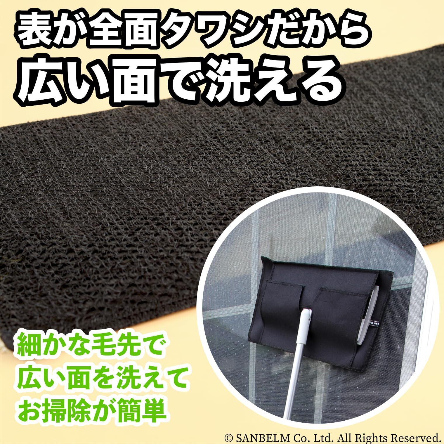 【新着商品】サンベルム(Sanbelm) タワシ 高いところ用網戸洗い ブラック 30×16×0.5cm 柄付き 差替え 網戸掃除 ブラシ アクリル へちま スポンジ お風呂 ささら ナイロン ミニ シリコン アクリル毛糸 L11512