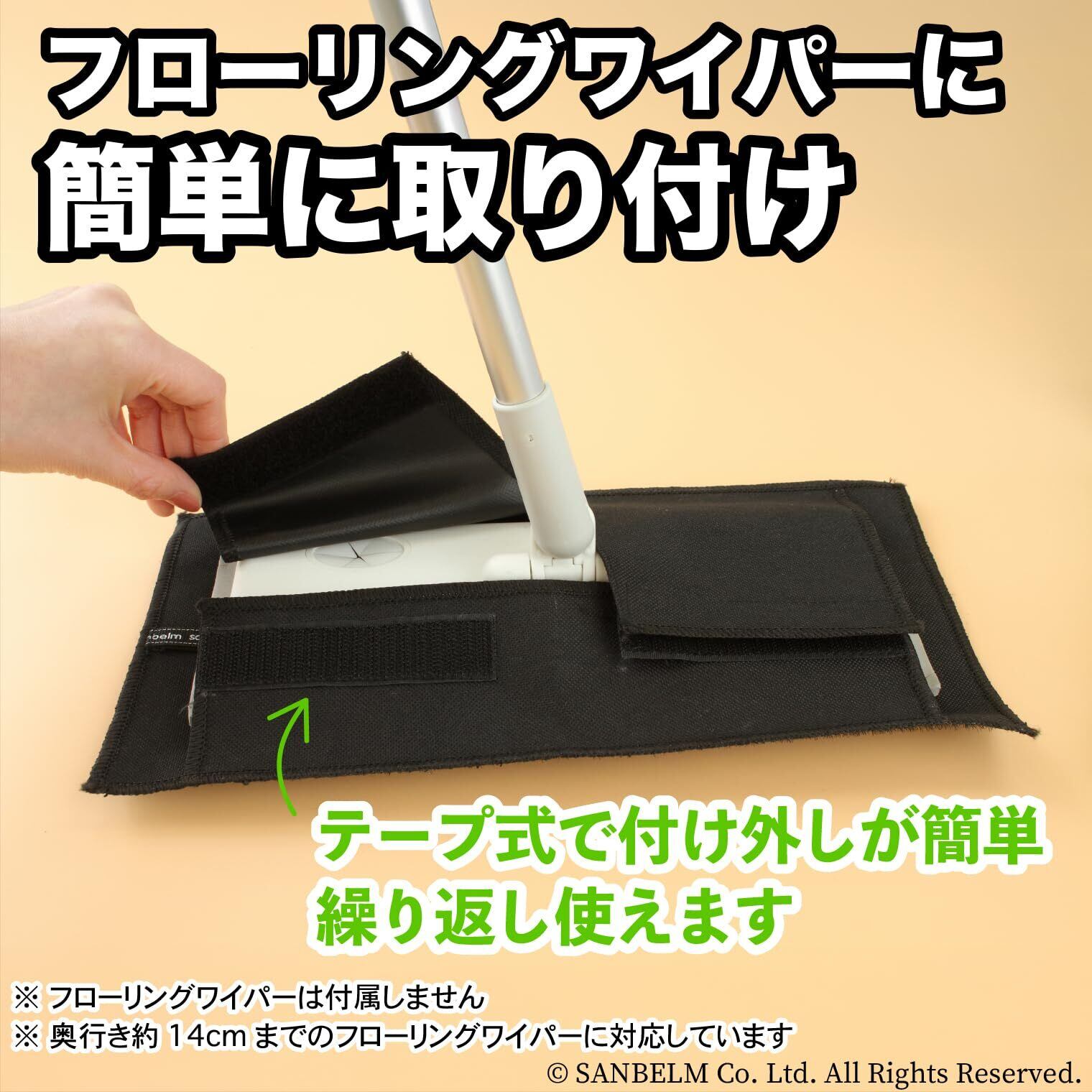 ●フローリングワイパーは付属していません。お手持ちのフローリングワイパーに取り付けてお使いください。(対応フローリングワイパー=短辺幅14cmまで)