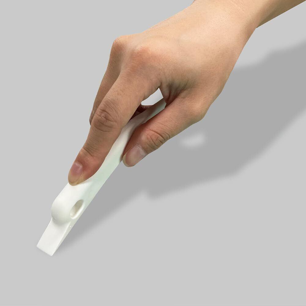 【開発にあたって】 浴室扉の通気口など、一般的なブラシが入りにくいスキマや細かい場所の清掃には、ホームクリーニングの現場では薄型ブラシが使用されています。 しかし、プロが使うものは金属製のものが多く、ご家庭で使用すると清掃箇所に傷をつけてしまう恐れがありました。 そこで、樹脂製のグリップと適度な硬さのブラシを採用し、家庭で安全かつ使いやすい形状の薄型ブラシの開発を進めました。 ブラシ部の薄さわずか3mmとスリムながら、清掃時にしっかりとしたコシを保てるよう、ブラシの長さや太さを何度も調整。細部までこだわり、納得のいくブラシが完成しました。 また、使用場所や汚れの種類に応じて使い分けられるよう、2種類のかたさのブラシをご用意しています。 ぜひ、ご家庭での清掃にお試しください。