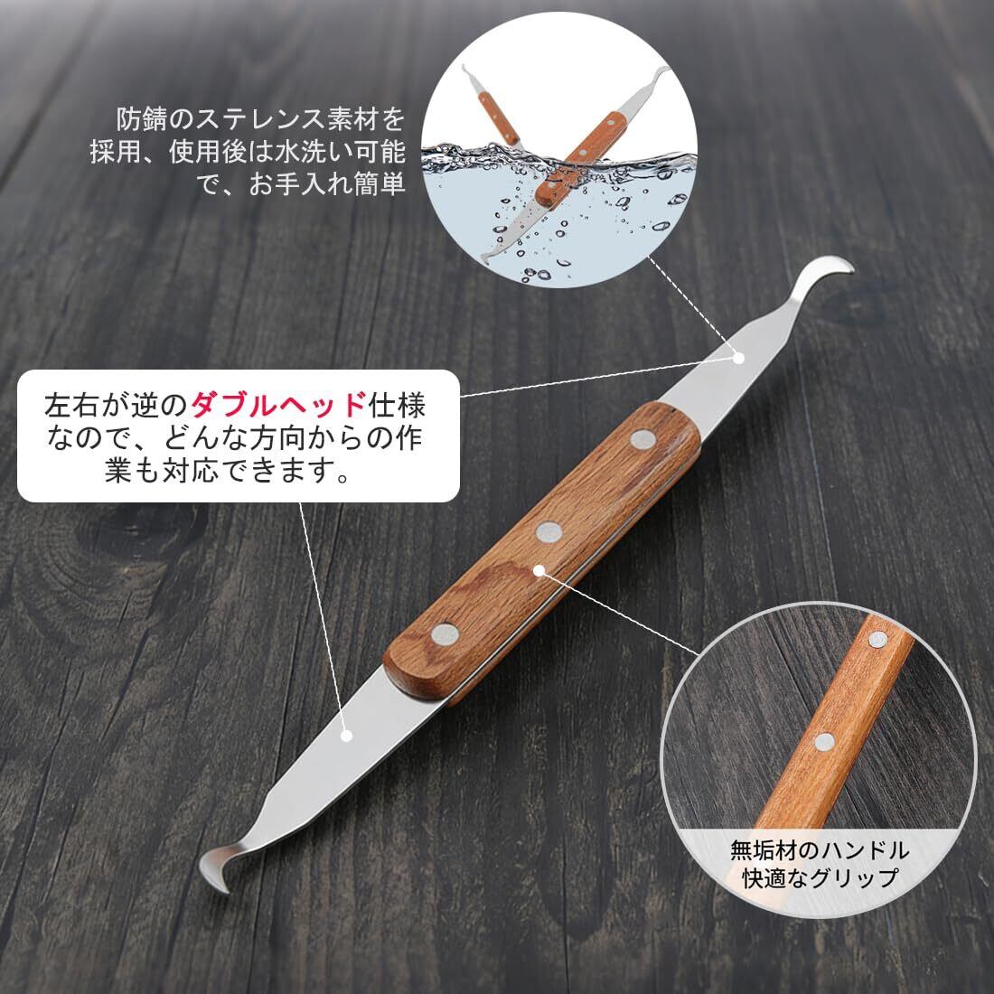 【高品質なステンレス製の刃と木製ハンドル】金属部分は錆に強く剛性の高いステンレス製、錆に強く保管やメンテナンスも楽々。ハンドル部品は天然木を採用しており、高級感がある同時に、耐熱150℃・耐腐食に強くて、耐久性に優れています。快適なハンドルを備えており、長時間握っても疲れません。使用後、水で洗浄可能で、お手入れが簡単です。