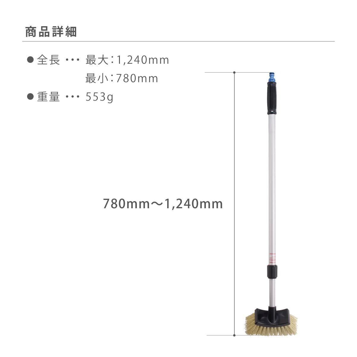 水をだしながらお掃除ができる伸縮型のデッキブラシです。