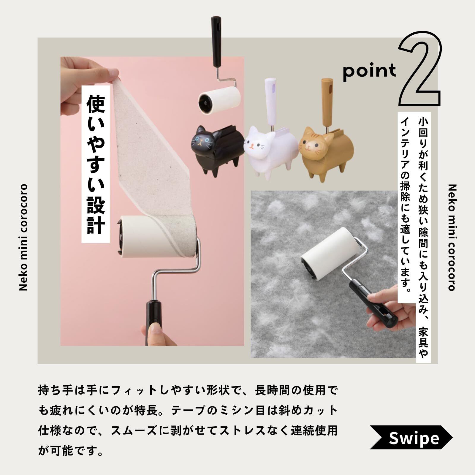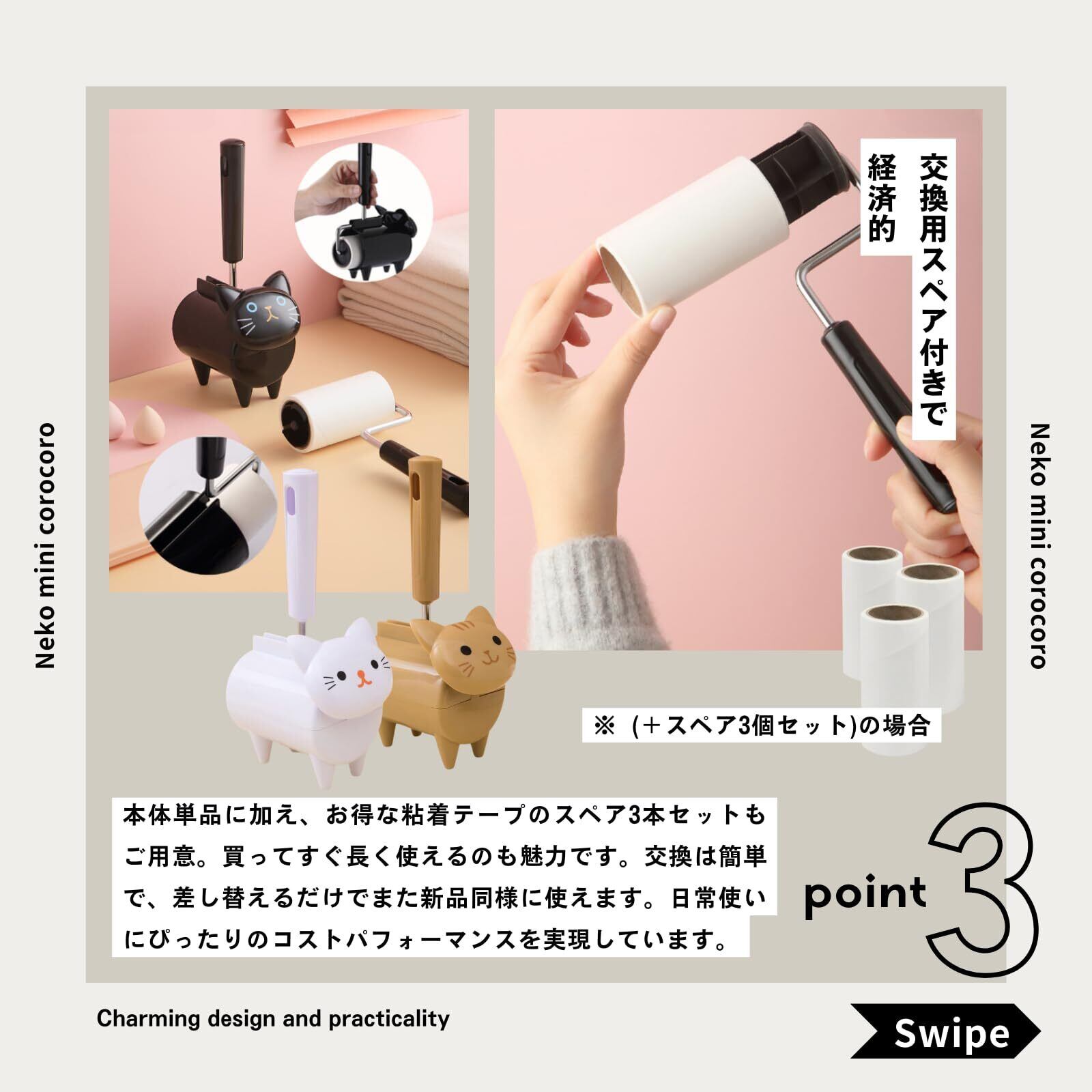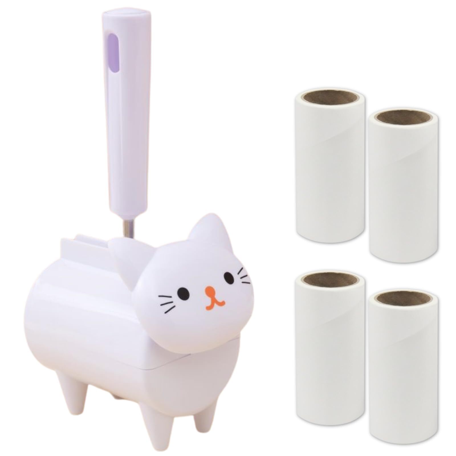 ミニコロコロ ネコ型 ミニ 粘着 クリーナー 斜めカット 掃除 カーペットコンパクト (ホワイト+スペア3個)
