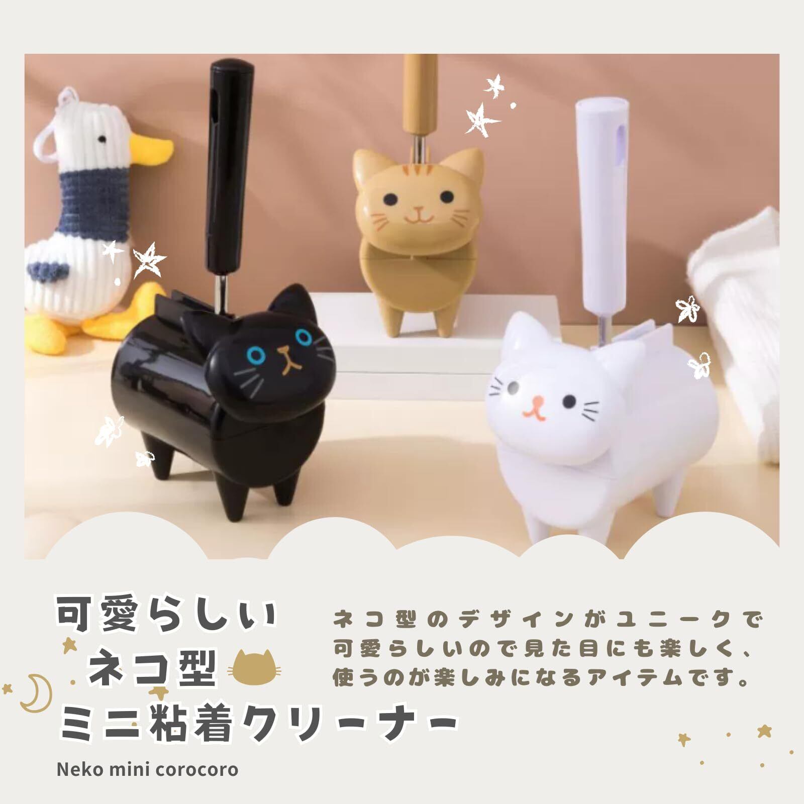 【新春セール】ミニコロコロ ネコ型 ミニ 粘着 クリーナー 斜めカット 掃除 カーペットコンパクト (ホワイト+スペア3個)