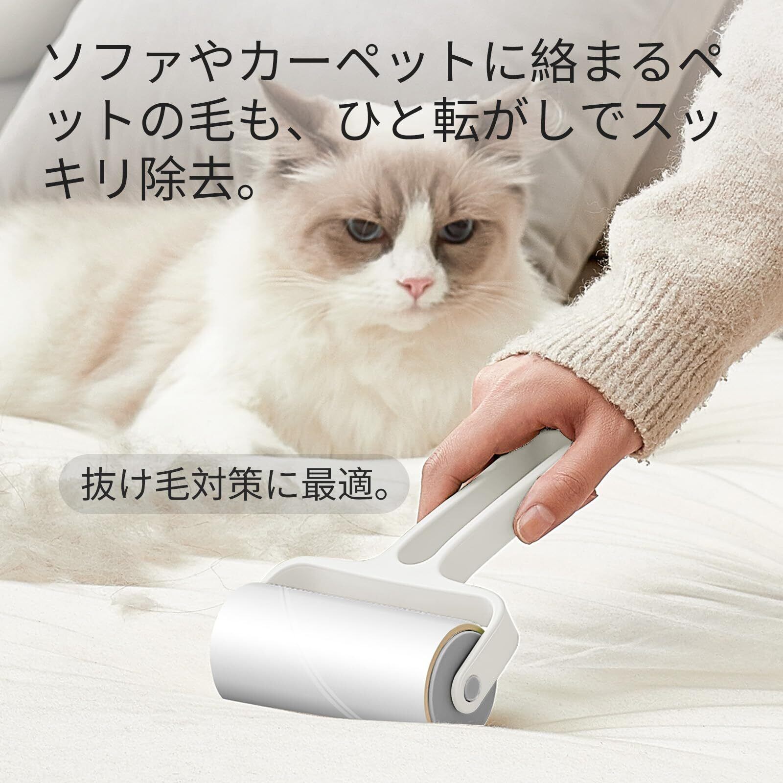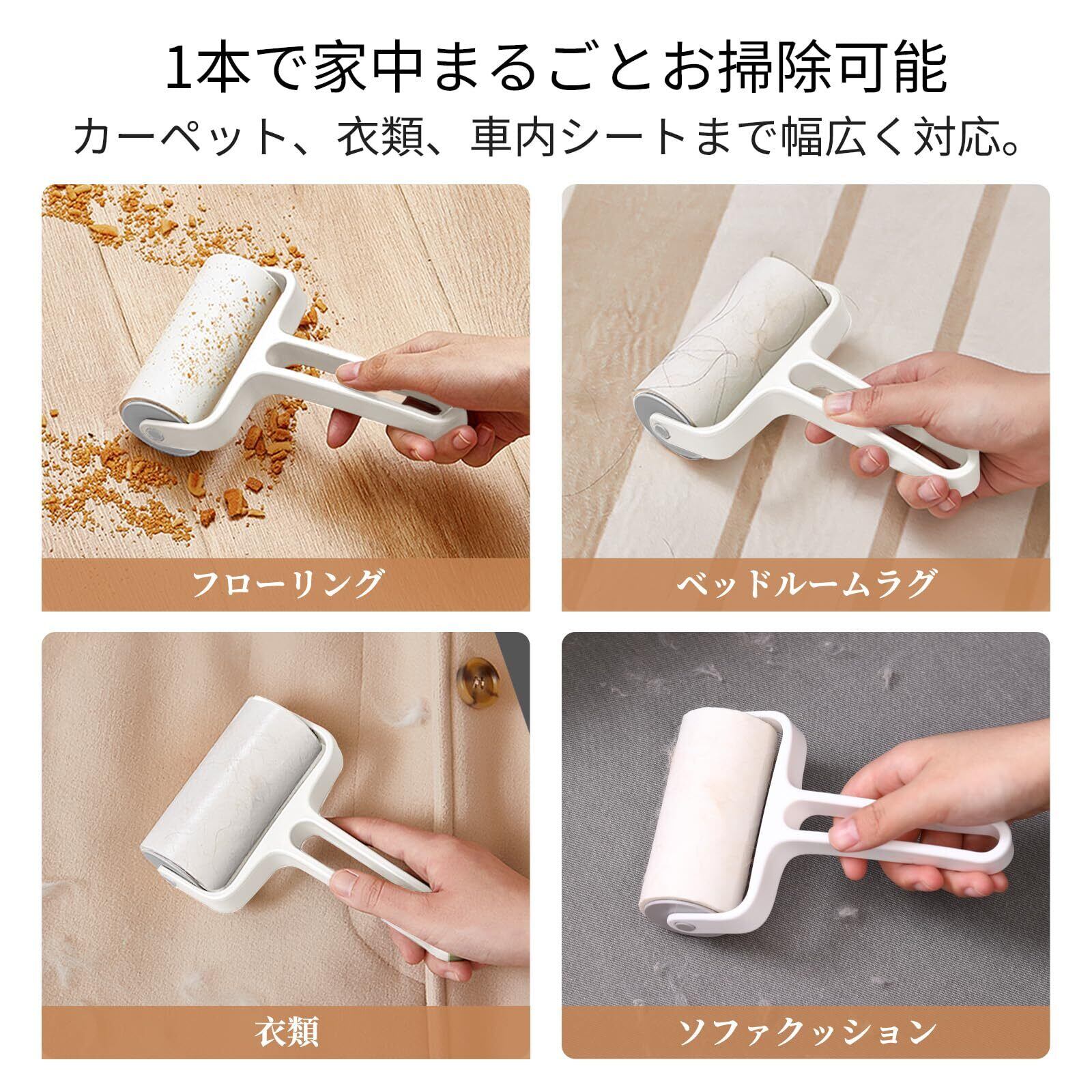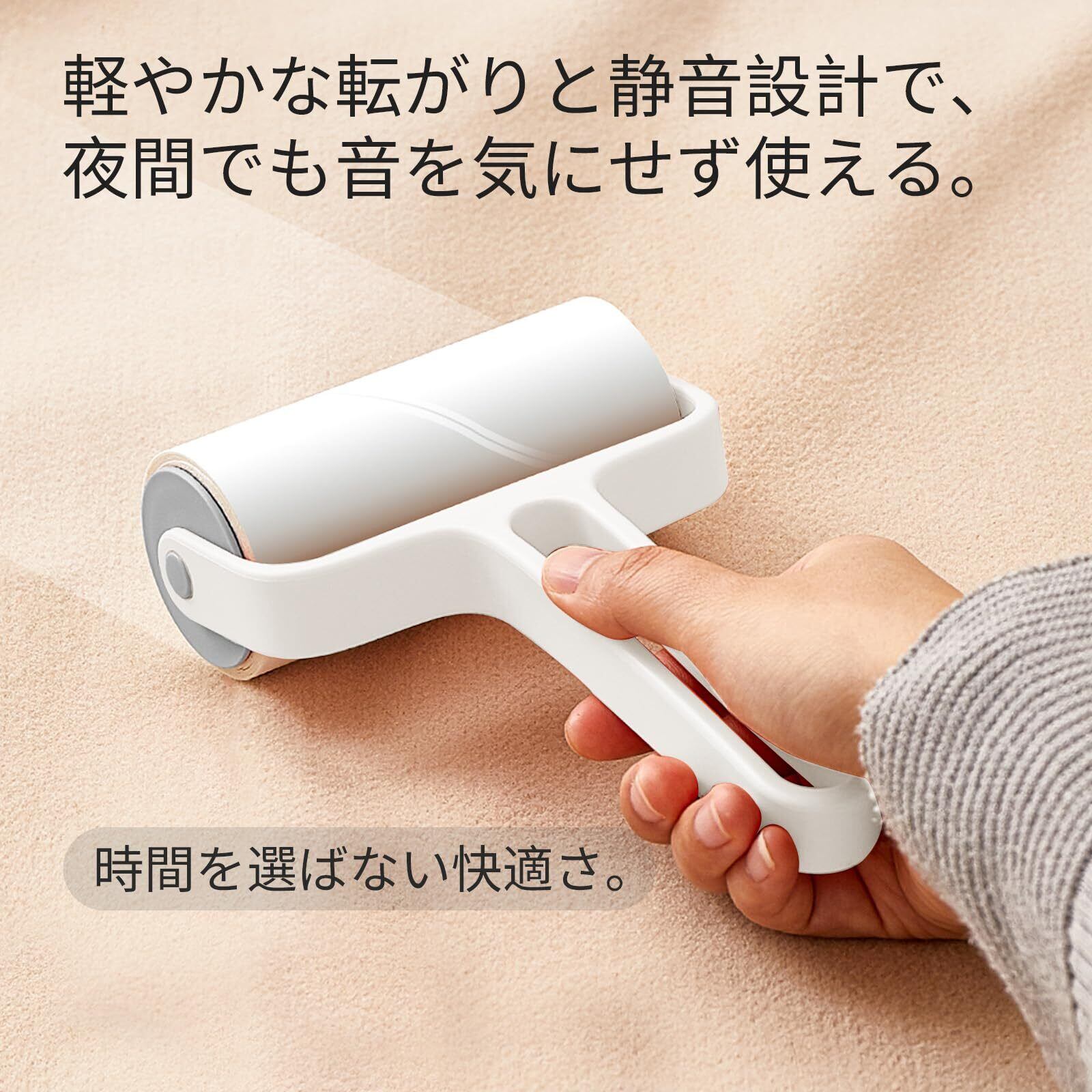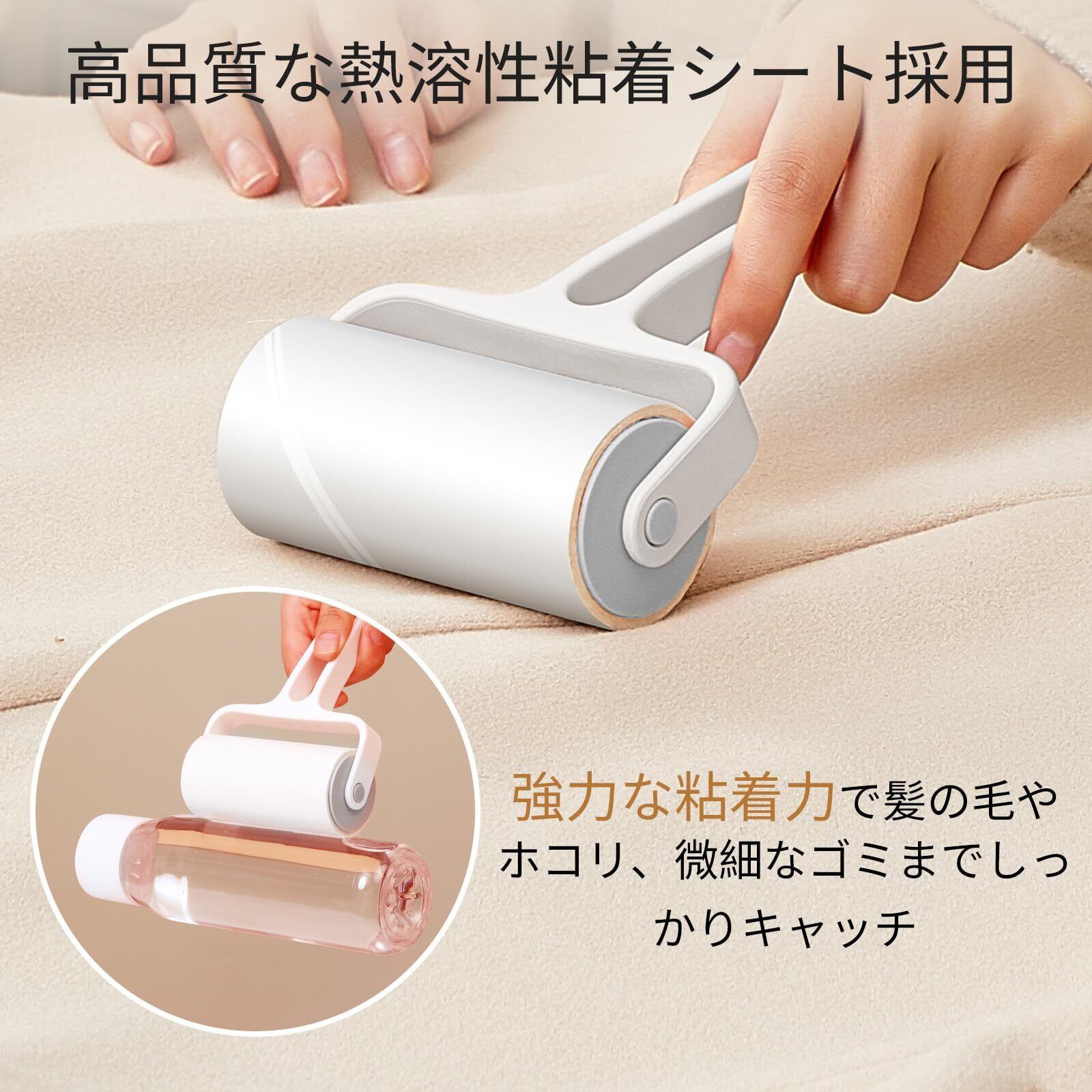 【強力な粘着力で隅々まで清掃】高品質な熱溶性粘着シートを採用し、髪の毛やホコリ、花粉、ダニまでしっかりキャッチする。衣類やソファ、長毛カーペットなど、さまざまな素材で優れた清掃力を発揮。静音設計とコンパクトサイズで、どんなシーンでも手軽に使いやすい。