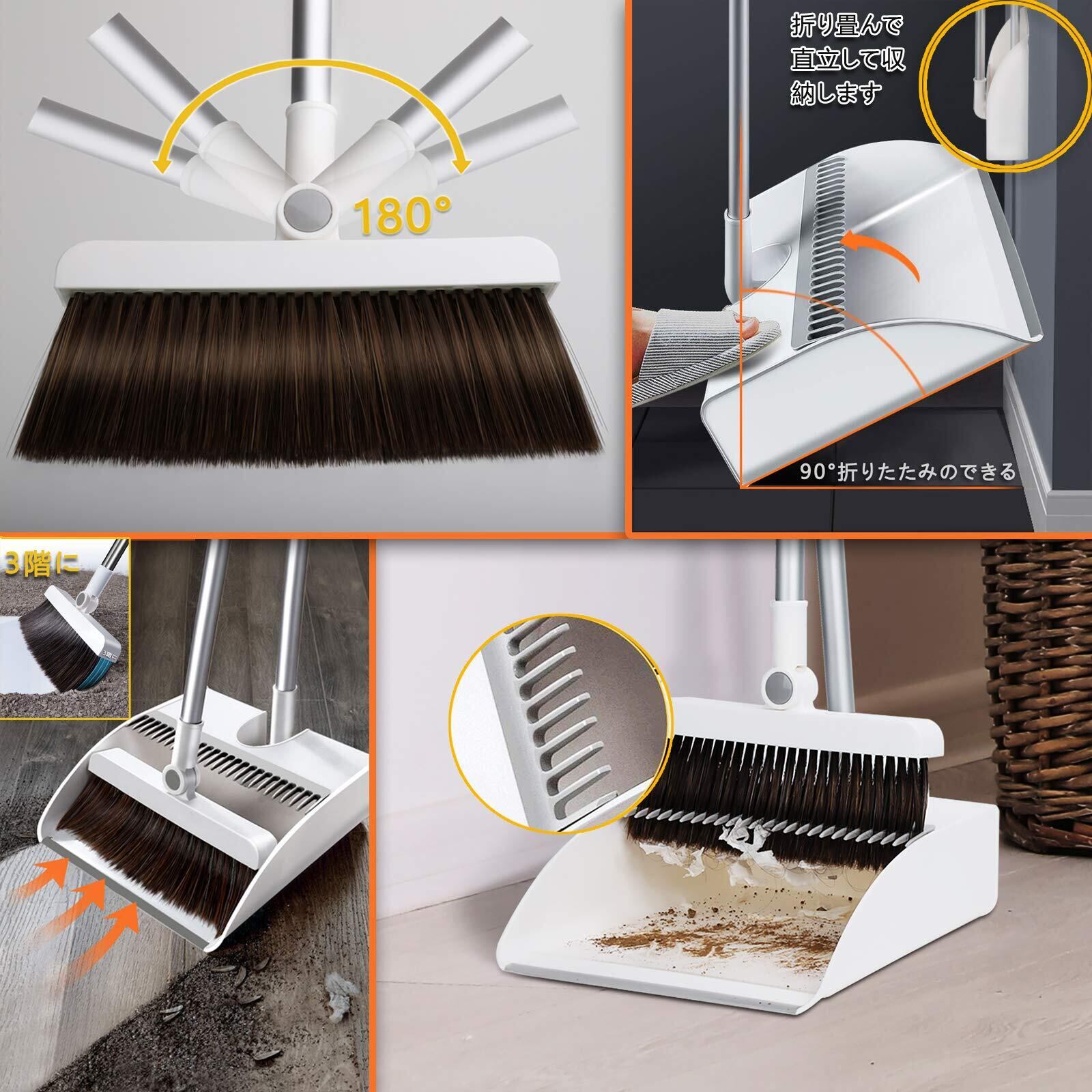 【180°角度調節可能 ほうき】最新型回転式ほうき、180°角度調節可能、狭い空間の掃除にも便利、ソファーの下、角のところ、簡単に掃除できます。最適のPET材質で、適度な弾力と密度があります、清潔力がアップしました、ほうきちりとりセット 。