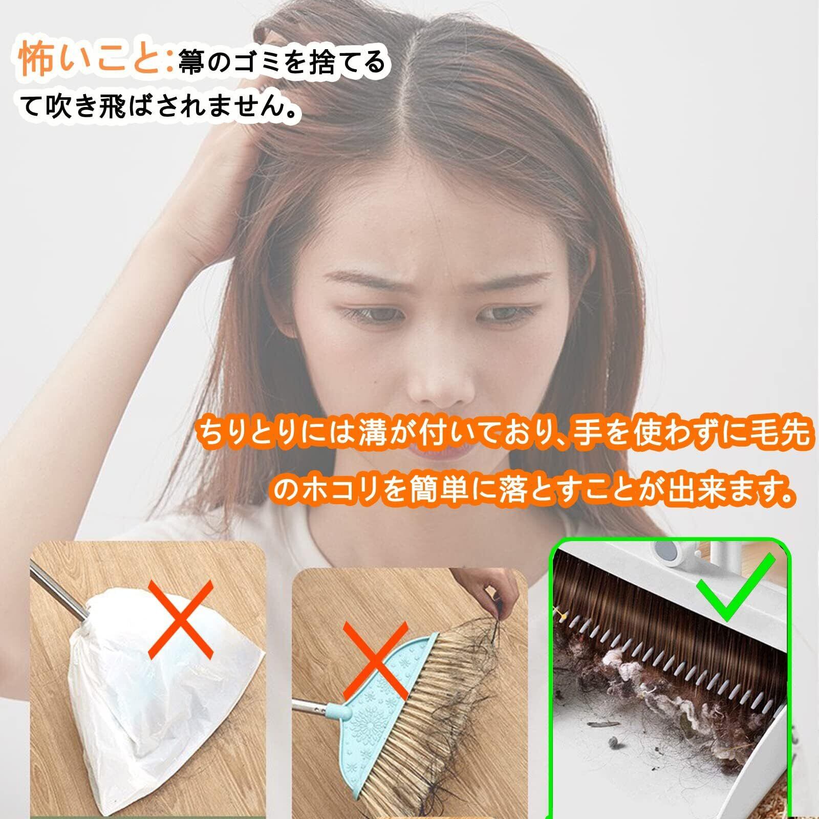 【多機能チリトリ】ちりとりの歯が長くなった、手を使わずに毛先のホコリを簡単に落とすことが出来る、髪の毛や動物の毛などの小物を解決しできる、手汚れにくい 。ちり取りの先端部分は床とぴったり付くので、ごみを安く入れさせります、ホコリをもらしない。