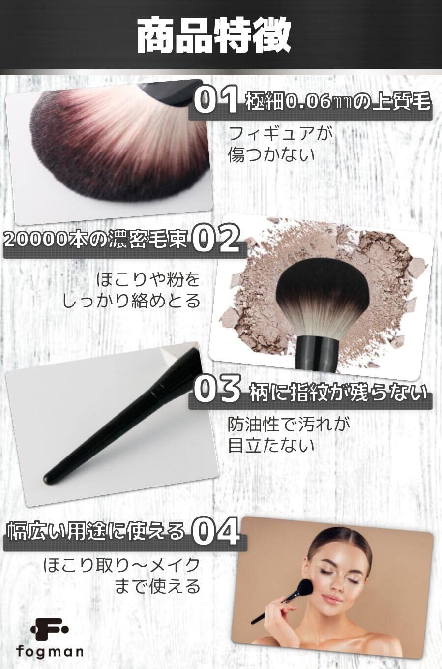 【商品特徴】 極細0.06㎜の上質毛:フィギュアが傷つかない 20000本の濃密毛束:ほこりや粉をしっかり絡めとる 柄に指紋が残らない:防油性で汚れが目立たない 幅広い用途に使える:ほこり取り~メイクまで使える