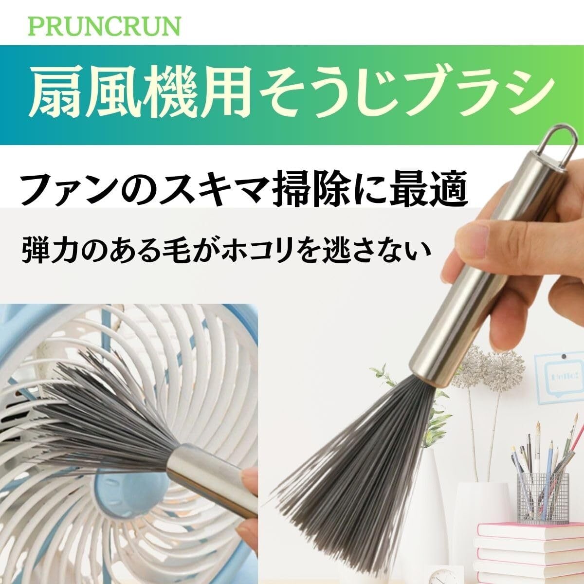 扇風機やハンディファンのほこりとり用ブラシです。ステンレス製の取っ手と柔らかいプラスチック製の毛先を採用。取り外しができないハンディファンや卓上扇風機のホコリとりや小さなスキマのゴミ取りに最適です。【注意】工場での生産過程や配送時に、取っ手に小さなくぼみができる事があります。使用していくうちにプラスチックの毛先が抜ける場合があります。