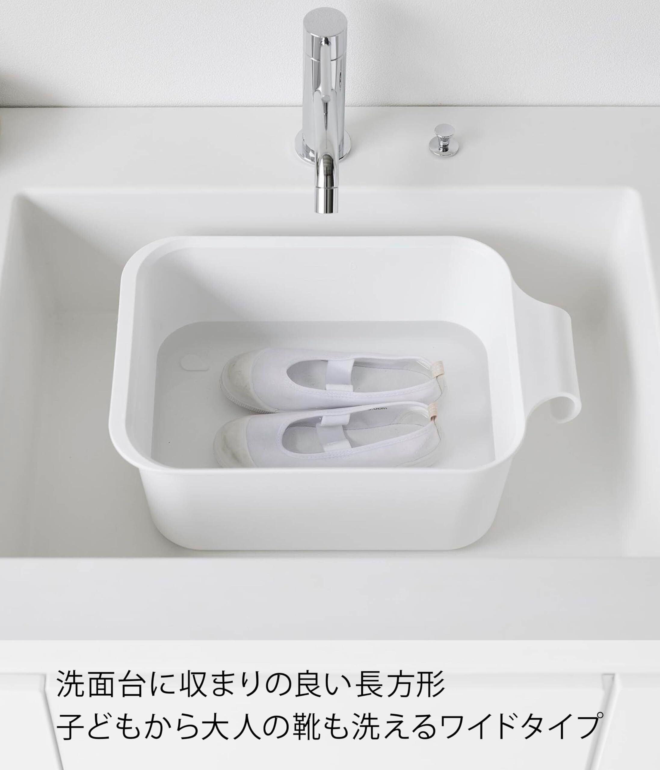 洗面台に収まりやすい長方形なので衣類などの浸け置き洗いや、子供から大人のシューズも洗うことができます。