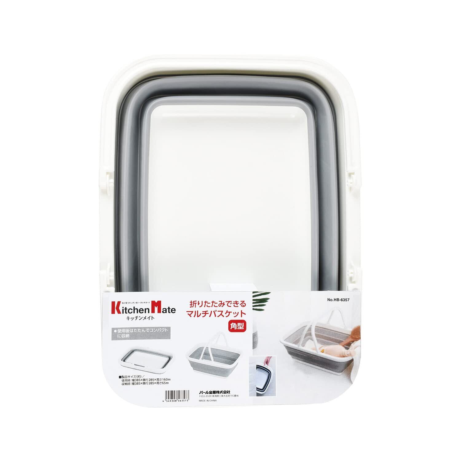 【在庫セール】パール金属 マルチ バスケット バケツ 角型 折りたたみできる キッチンメイト HB-6357 グレー