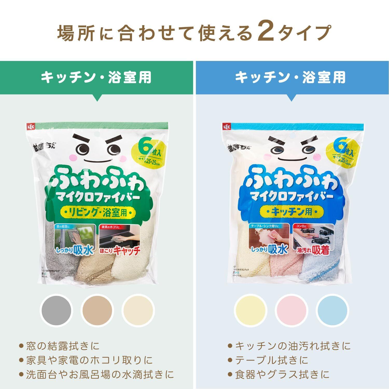 レック 激落ちくん ふわふわ マイクロファイバークロス (6枚入・約25×25cm) キッチンおそうじ用/油汚れ吸着・しっかり吸水