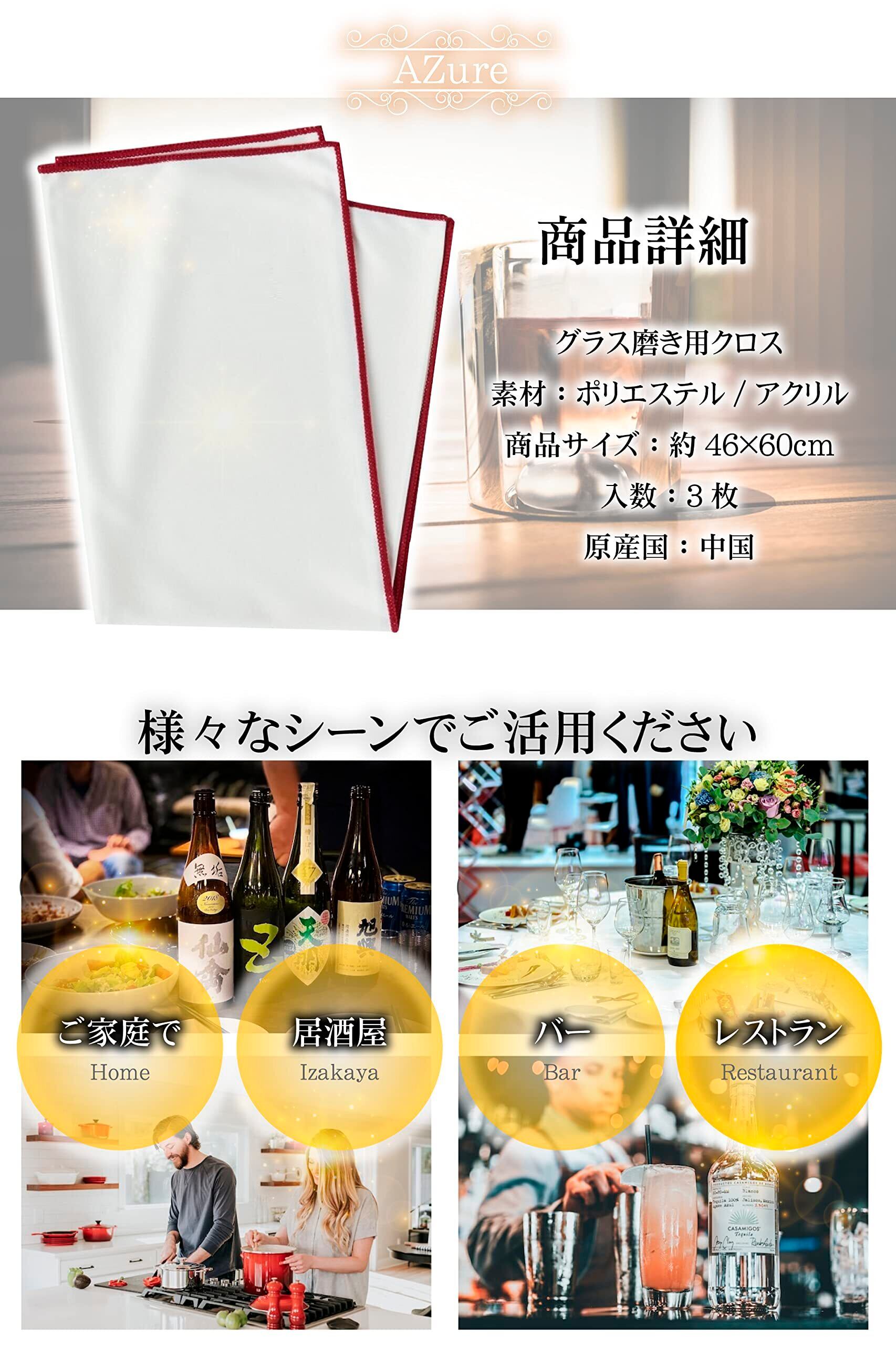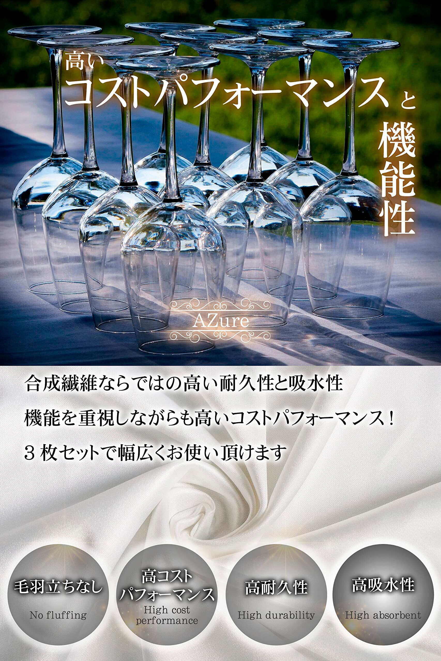 AZure グラスふき用クロス 3枚セット グラス拭き 布巾 マイクロファイバー 約46×60cm