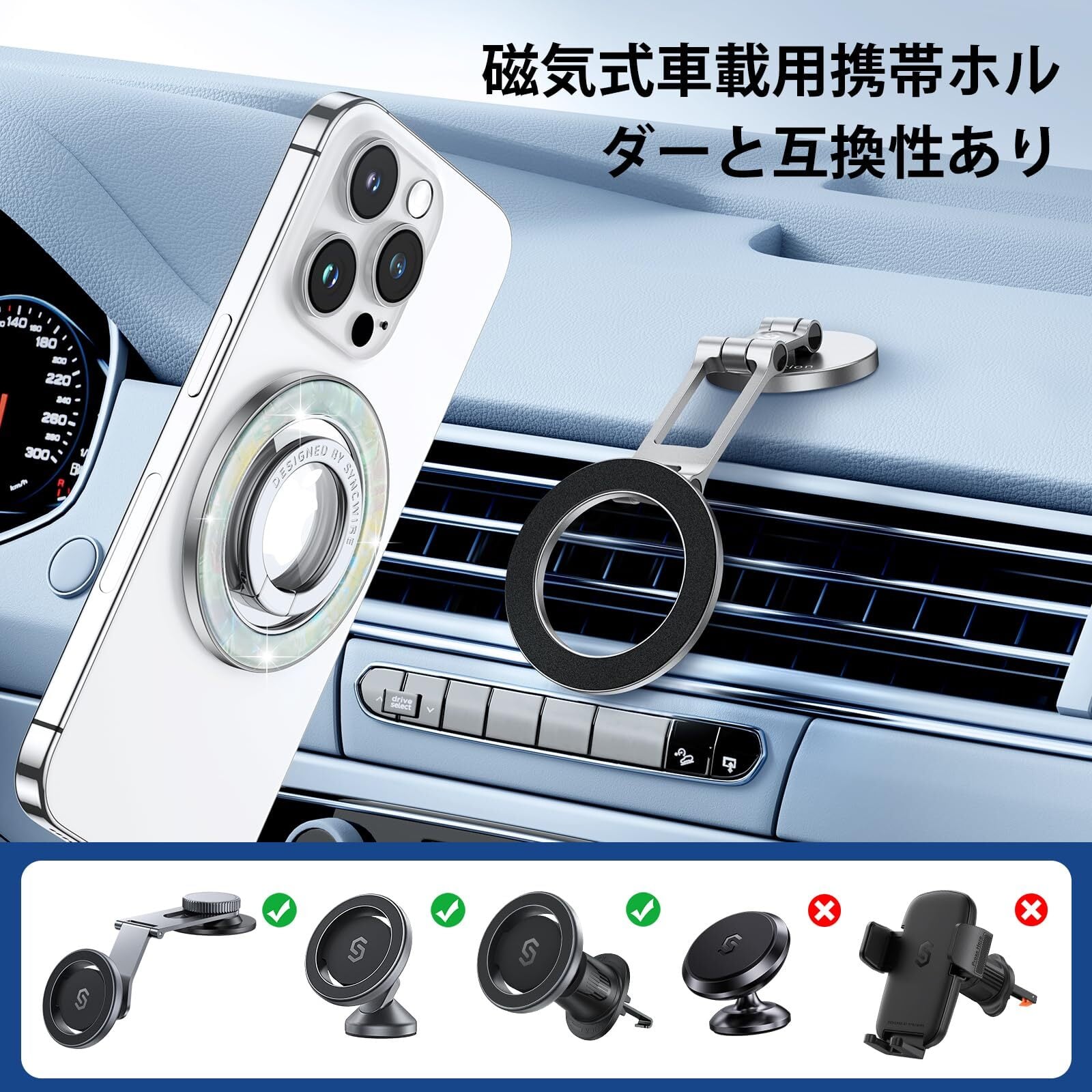 【超強力なマグネット】Syncwire MagSafe電話リングホルダーは、優れた磁力を提供するためにマグネットで作られています。指1本で携帯電話をMagSafeマグネット式電話リングホルダーにしっかりと固定でき、揺れや動きに強いしっかりとしたホールド感を体験できます。付属の金属リングと一緒に使用すると、磁力がさらに強化されます。