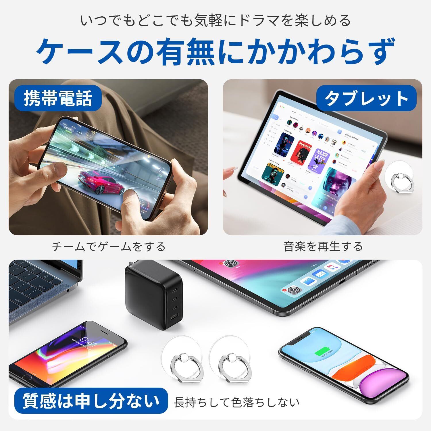 ✨【強力かつクリーンな粘着技術】新型強力水洗い可能粘着ゲルを採用。痕跡を残さず、繰り返し使用可能で、スマホケースや端末本体の表面を傷つけません。柔らかい素材が貼り付け面を優しく保護します。