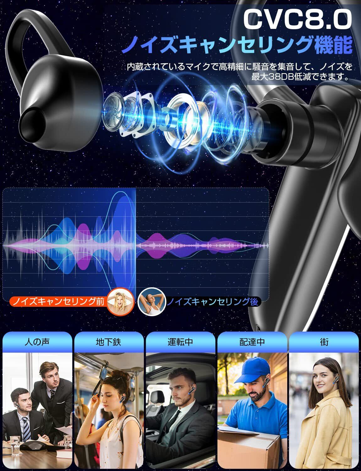 【新登場 Bluetooth 5.3】ヘッドセット イヤホン 片耳 ブルートゥース 耳掛け式 片耳 最大16時間連続使用 ワイヤレスイヤホン 左右耳兼用 ハンズフリー通話可 マイク内蔵 SIRI/ミュート機能 CVC8.0ノイズキャンセリング 快適装着 2台同時接続可能 運転/在宅勤務/テレワーク/LINEチャット/zoom会議/ビジネス