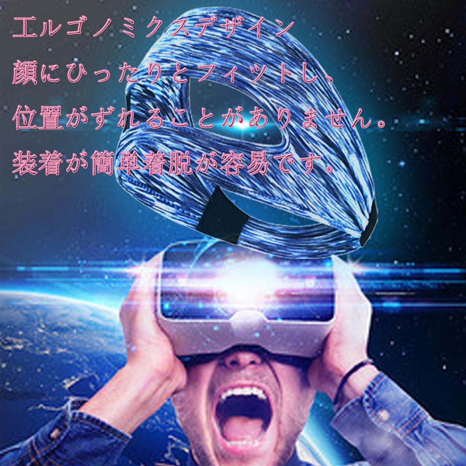 【高品質素材】VRアイマスクナイロンは吸水速乾機能素材として、洗うことができ、乾くのも速い。パッケージには2つのVRマスクが含まれており、黒、青、の異なる2色を含む誰もが満足できるようになっています。友達と家族の間でも交換できます。清潔な状態を保ち、ゲームを楽しみにしています。