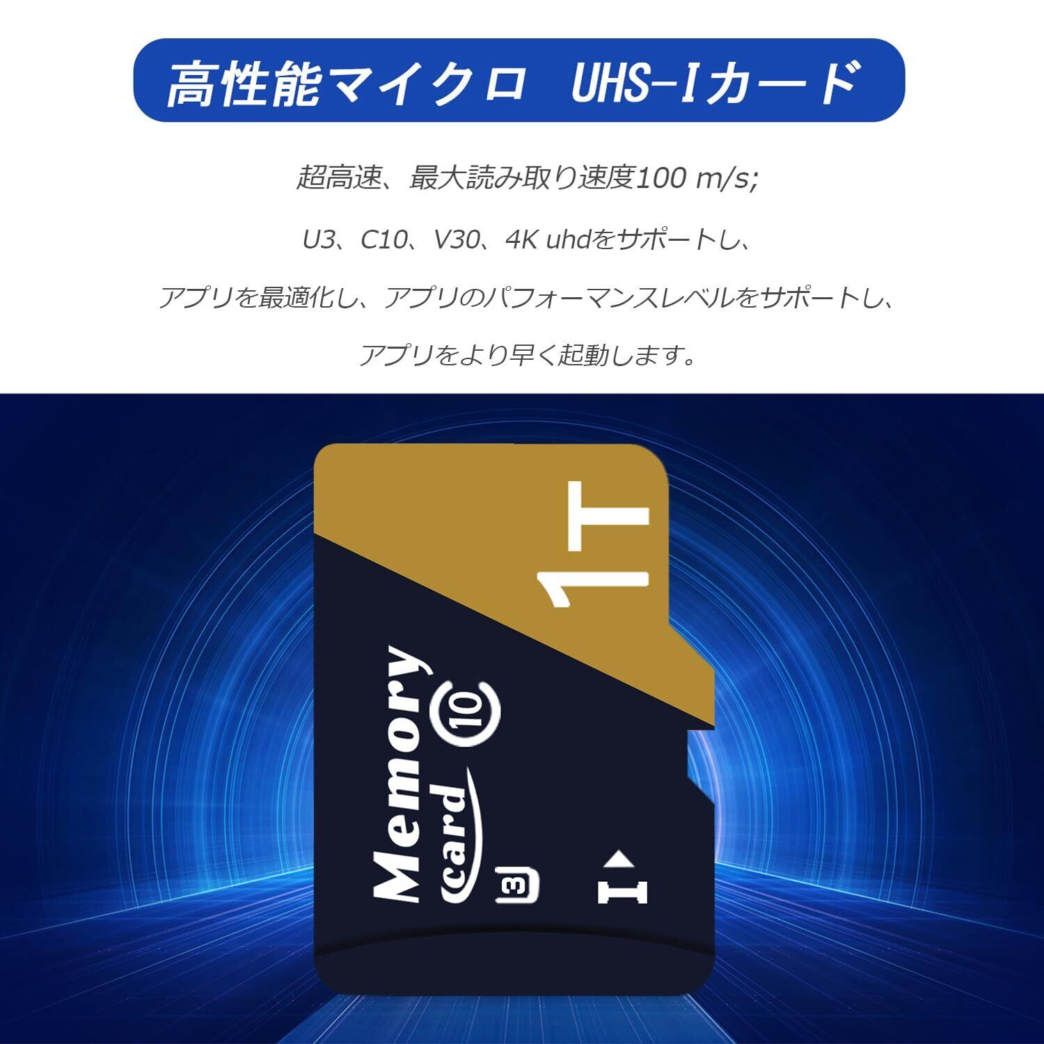 容量:1024GBメモリーカード。 外形寸法: 15×11×1mm。 動作温度: -25℃~85℃ : 耐温度、防水、耐磁、耐X線、静電耐性 カードタイプ: CLASS10 UHS-I U3 V30 最高100MB/秒の読み取り速度でメディアを転送する時間を短縮します。ホストデバイス、インターフェース、使用状況などの要因によって転送速度が低下する場合があります。 スマートフォン、タブレット、デジタルカメラ、4Kゲーム機などで使用できます。 データ復旧サービスがありませんので重要なデータをバックアップする作業に気をつけてください。
