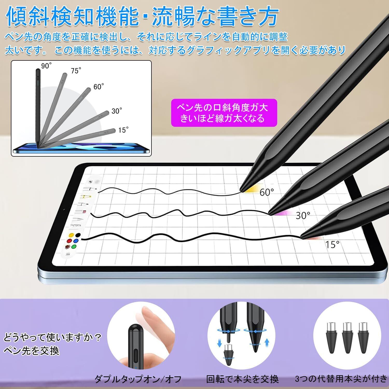 【数量限定】タッチペン 【全機種対応 急速充電】 2026業界新登場 スタイラスペン 超高精度 極細 stylus pencil 互換ペン 誤ON/OFF防止/電量表示/磁気吸着機能対応 軽量 耐摩 耐久 iPad/iPhone/Android/スマホ/タブレット用ペンシル USB充電式「日本語取扱説明書付き」(黒色)