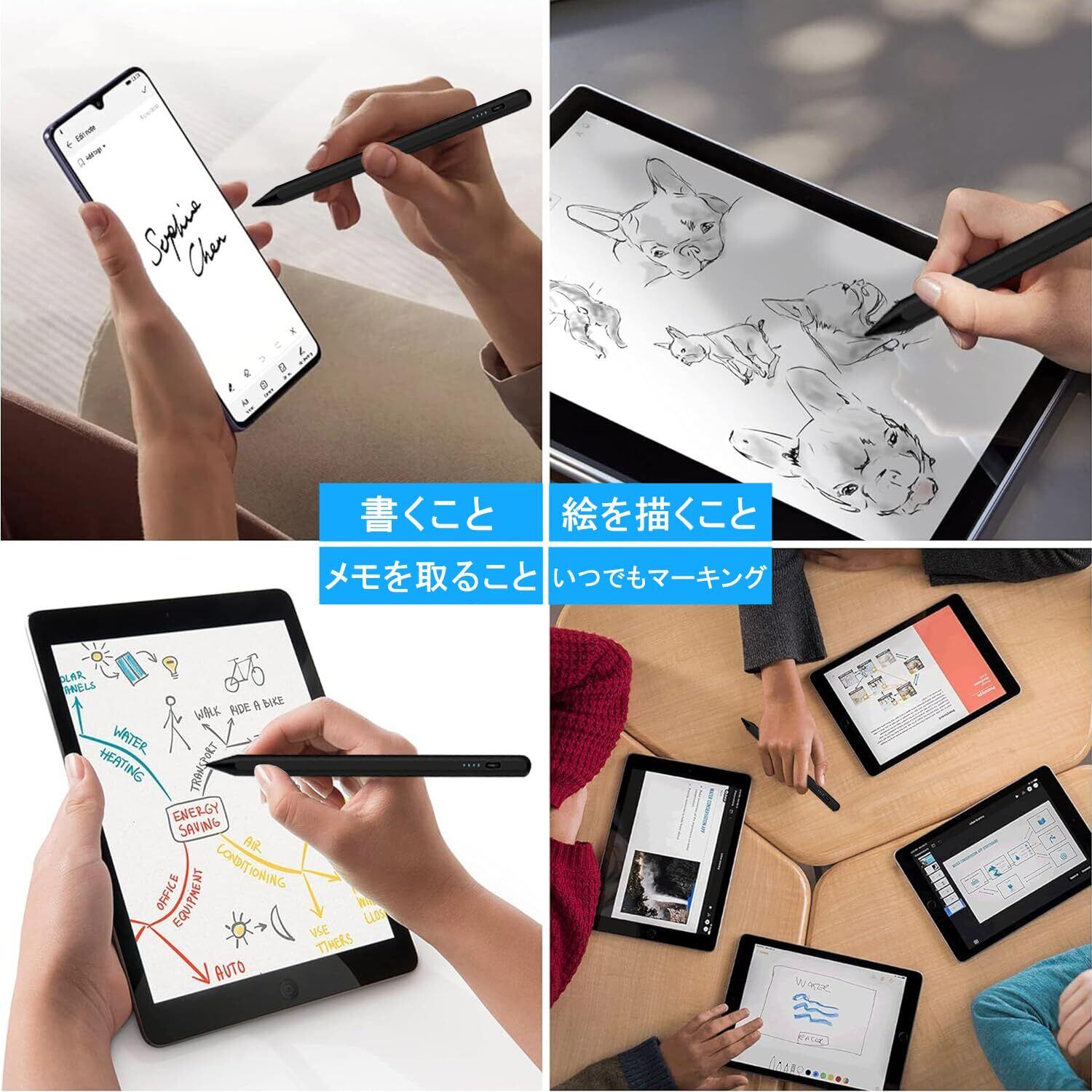 タッチペン 【全機種対応 急速充電】 2026業界新登場 スタイラスペン 超高精度 極細 stylus pencil 互換ペン 誤ON/OFF防止/電量表示/磁気吸着機能対応 軽量 耐摩 耐久 iPad/iPhone/Android/スマホ/タブレット用ペンシル USB充電式「日本語取扱説明書付き」(黒色)