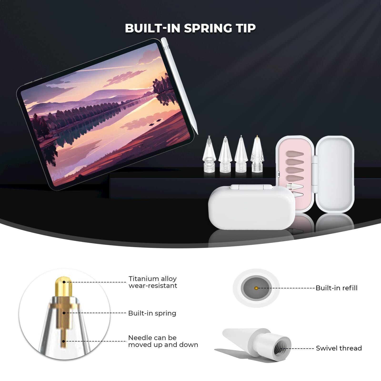 [交換が簡単]鉛筆Usb Cは、優れた材料から作られたAppleのペン先のためのヒントが一致し、スレッドが回転することによって簡単に取り付けと取り外しができ、あなたはペン先のケースに交換用のAppleの鉛筆のペン先を格納することができ、これはあなたの望ましいIpadのペンアクセサリーです