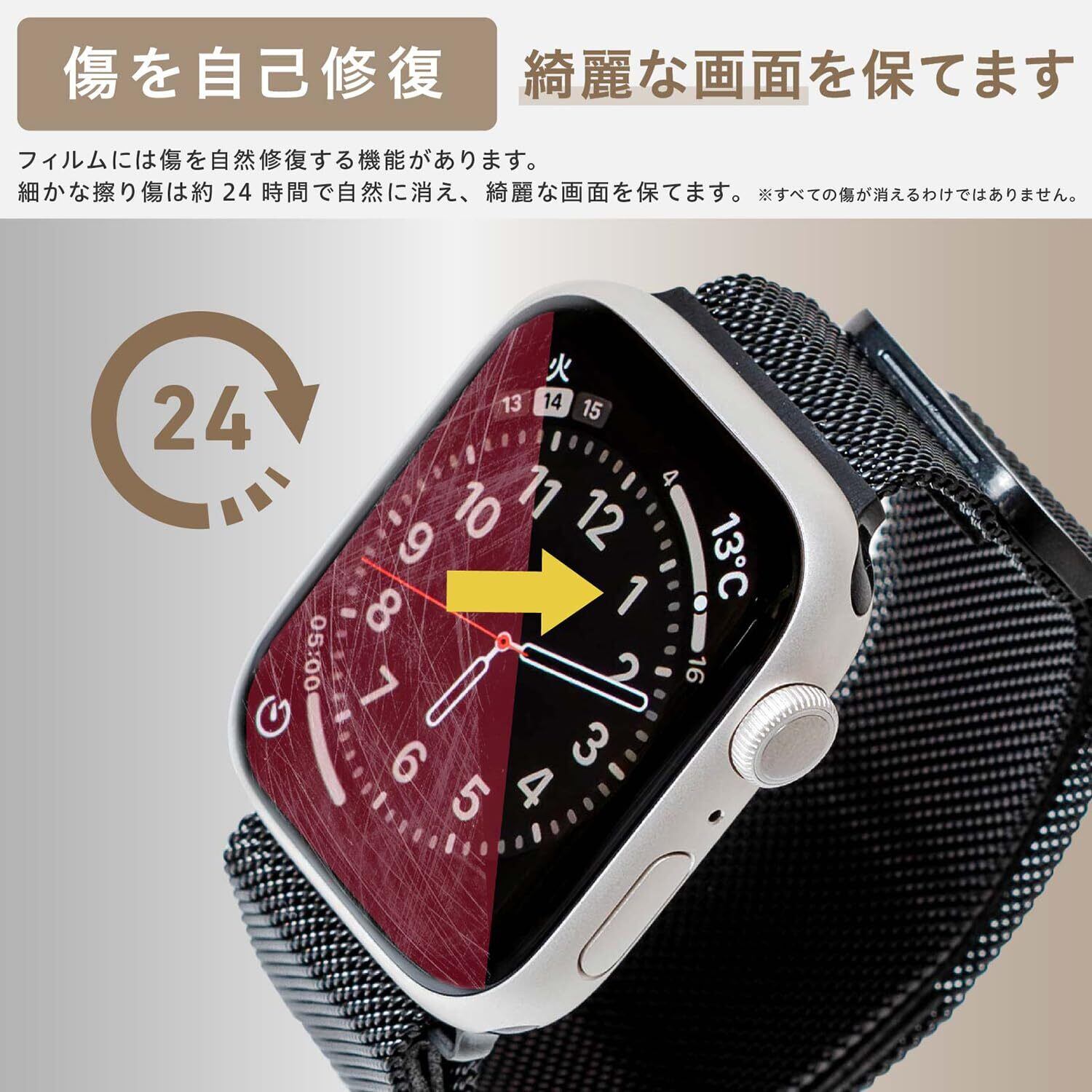 ▶▶▶【タッチ感度良好】:0.15mm極薄なのでタッチ感度は変わらず。AppleWatch用フィルムによくあるタッチ感度の低下はなく、スルスルと快適に操作することができます。また、フィルムには傷を自然修復する機能があります。細かな擦り傷は約24時間で自然に消え、綺麗な画面を保てます。※すべての傷が消えるわけではありません。※メーカーに関わらず、タッチ感度重視のTPUフィルムは定期的に交換することを前提とした商品です。