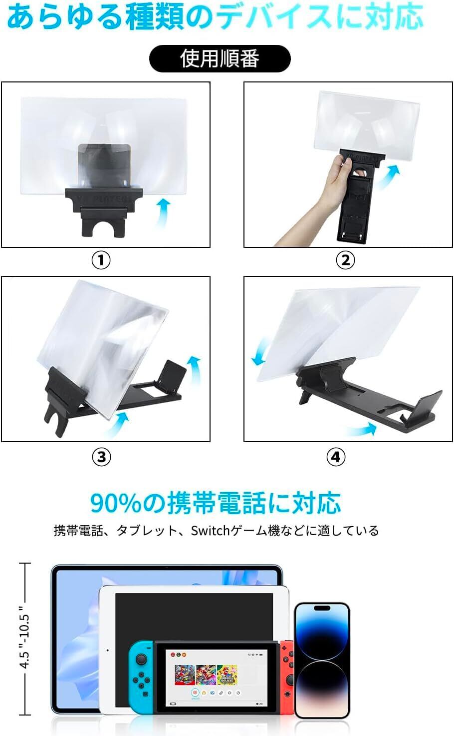 【在庫処分】スクリーンアンプ 正規品 スタンド ノウボーダー 拡大鏡 スマホ拡大鏡ホルダー HD 5倍 3D 携帯 スクリーン拡大器 360 自由回転 枠無し 疲労軽減 スマホ画面拡大 軽量 スタンド折り畳み式 多機能調節可能 (ブラック)