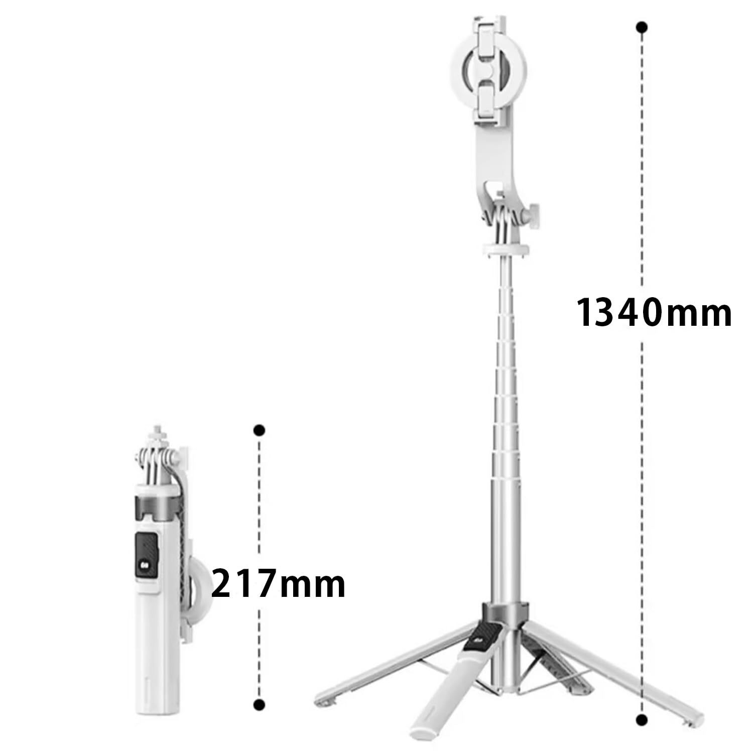 自撮り棒 スマホホルダー 磁気マグネット式 magsafe 軽量 折りたたみ式 コンパクト 角度調整可能 リモコン付 遠隔シャッター セルカ棒 三脚 スタンド iPhone/Android対応 (ホワイト)