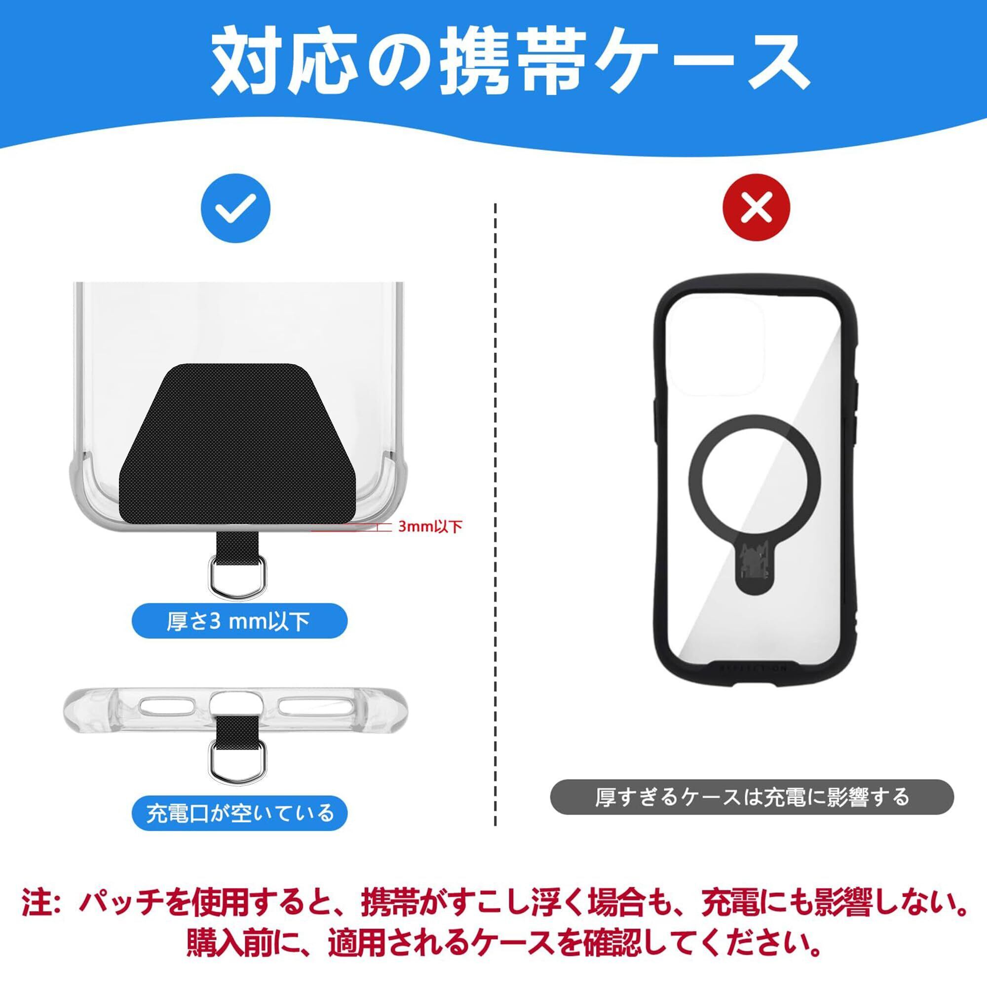 【セット内容】パッチ×2、ネックストラップ×1(最長約72cm、最短約39cm) ご注意:スマホケースを付属しておりません。【自由に操作】ネックスマホを首に掛けておけば、落下防止になり安心して操作できます。それにスマホを首からさげでおけば、着信にすぐ気が付くことができます。充電にも干渉しません。また、スマホケースのタイプをに限らず、汎用ストラップです。【充実した機能が満載】充電や食事中など一時的にスマホを置きたい時も、リングだけ外せば良いのでとても便利です。ネックストラップで調整ボタンがあります。ネックストラップの長さは自由に調節できます。それにスマホだけでなく、鍵、USBメモリなの小物を吊るして収納するから、紛失を防ぐことができます。【品質へのこだわり】ネックストラップ部分を柔らかくて平らなナイロンに使用して、首への負担を軽減しました。今まで首や肩が痛くて、ネックストラップの装着を悩んでいた方にもオススメです。