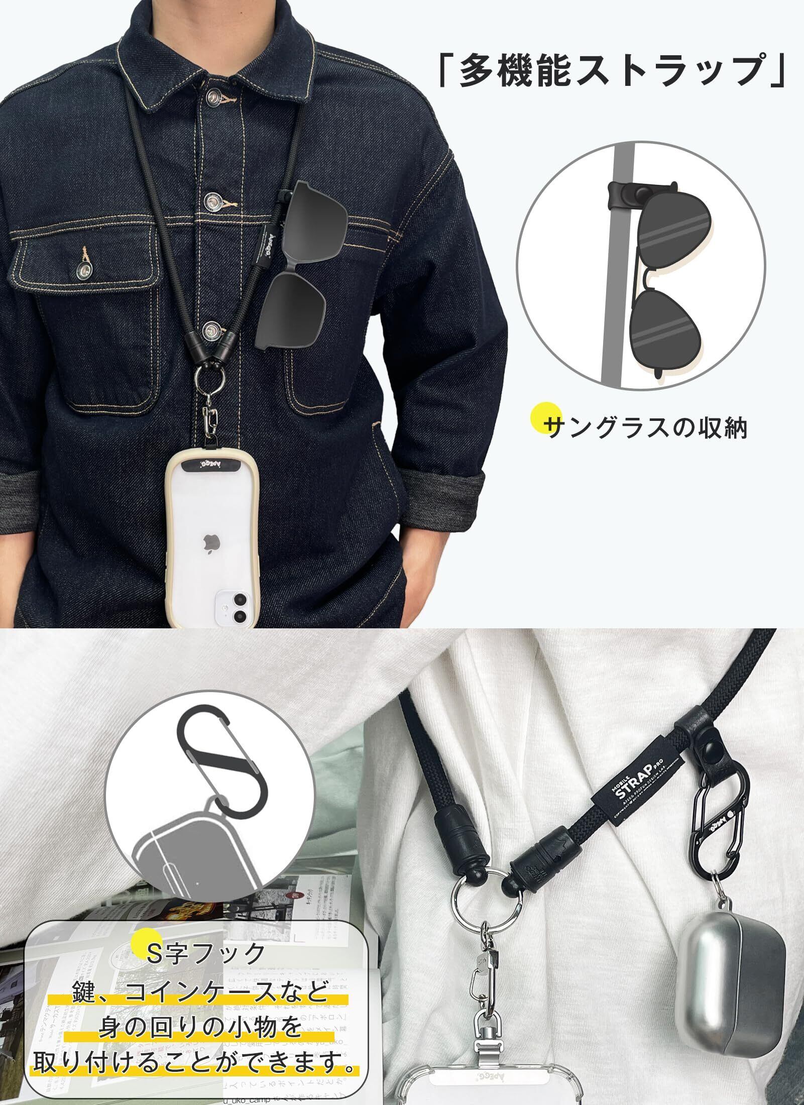 [VPEGGGP] APEGG スマホショルダー 120cm スマホストラップ 携帯ストラップ ショルダー 肩掛け 首掛け 斜めがけ iPhone 全機種対応 アウトドア ネックストラップ ストラップホルダー ストラップ 8mm_Black
