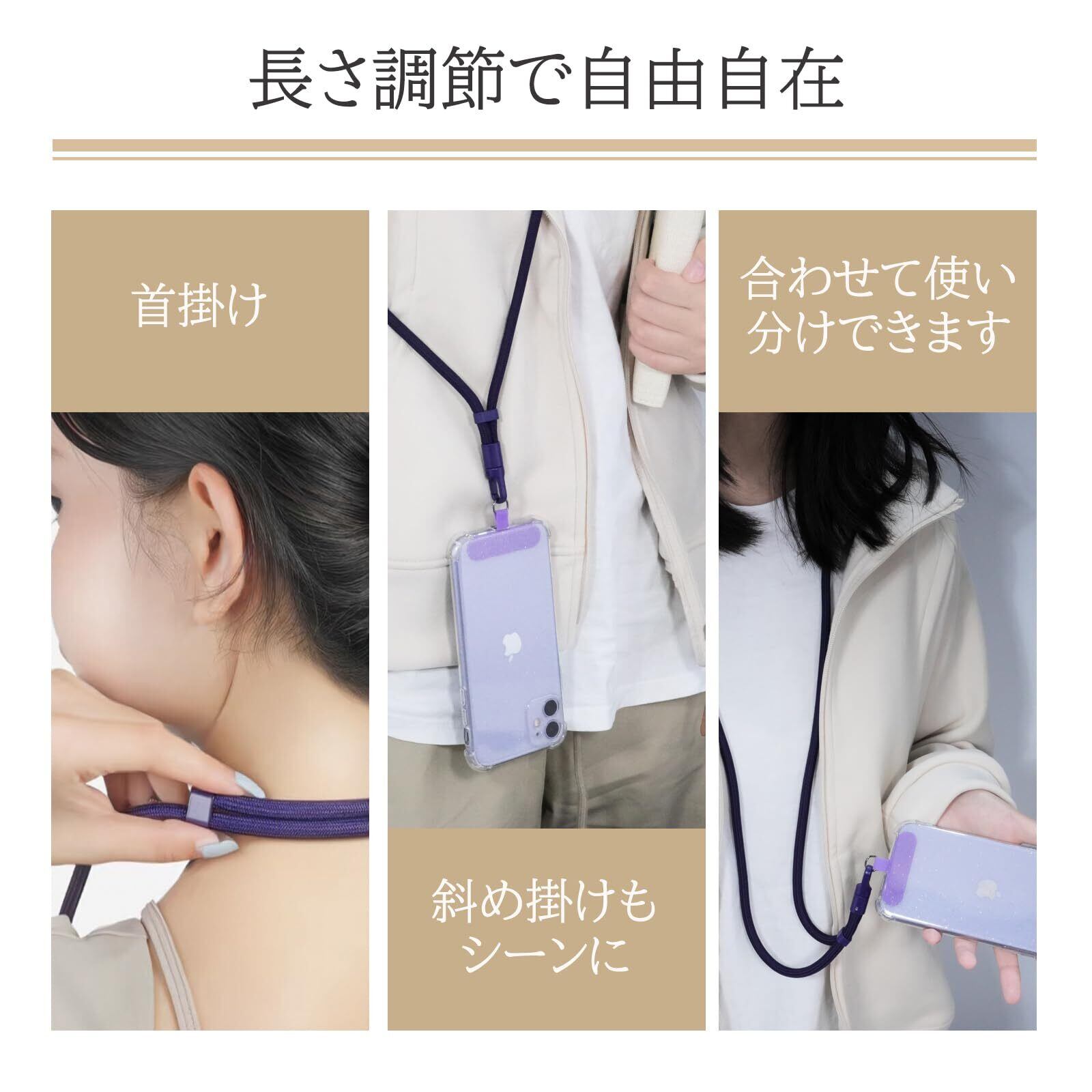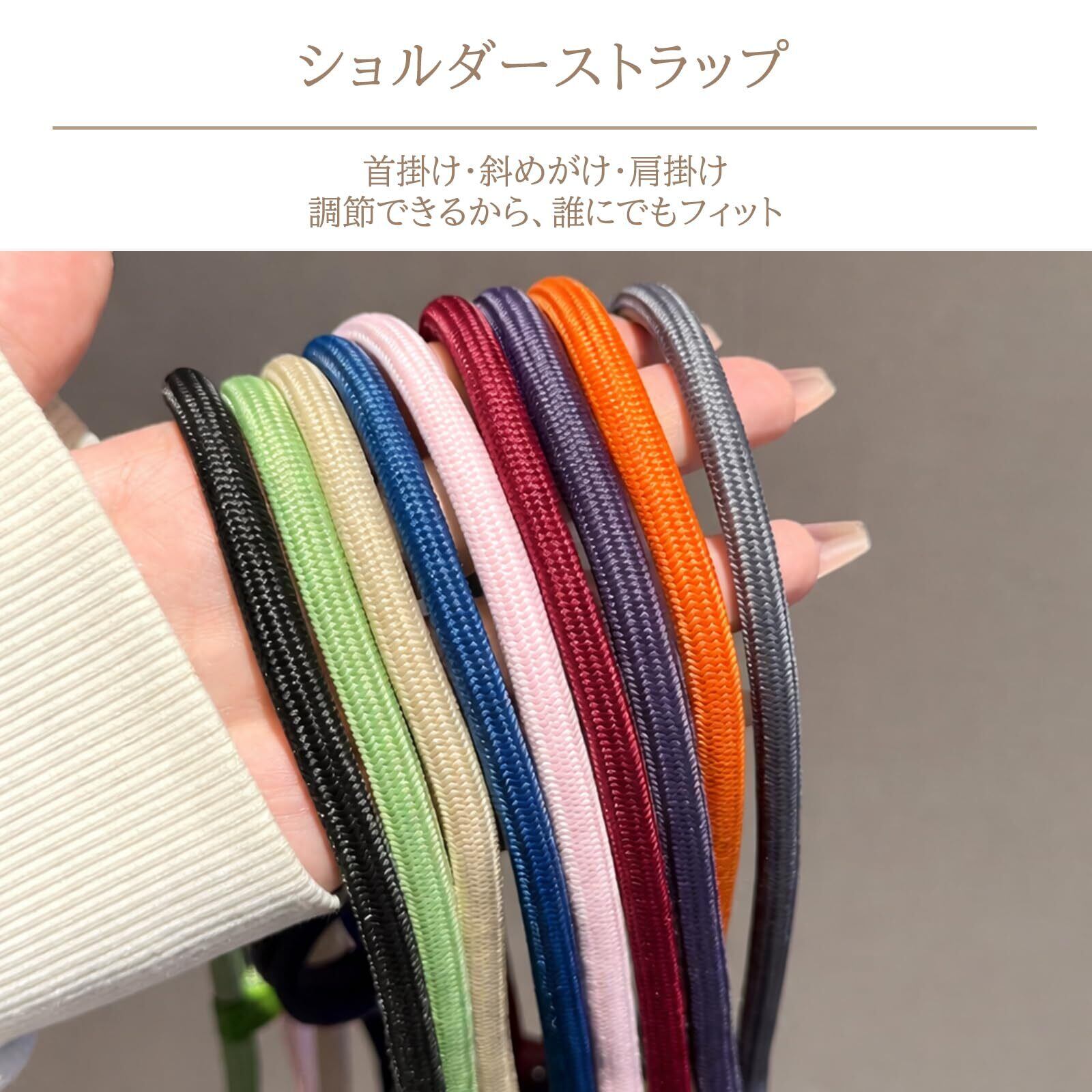 ① 【2WAYセット|シーンで使い分け】 ショルダーストラップ&ハンドストラップの 2WAYセット。 外出時は肩掛け・斜め掛けで 両手が自由、室内や移動中は手首に通して 落下・紛失防止。 通勤・通学・お散歩・ショッピングはもちろん、旅行・観光・キャンプ・ライブなど 幅広いシーンで活躍。