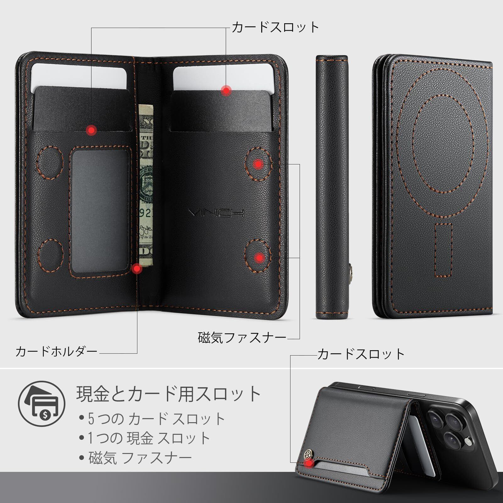シンプルデザイン:iPhone 用磁気式ウォレットは、スリムなカードホルダーで必要な収納スペースをすべて提供し、余分な厚みを追加することなく、必要な物品を整然と収納できます。