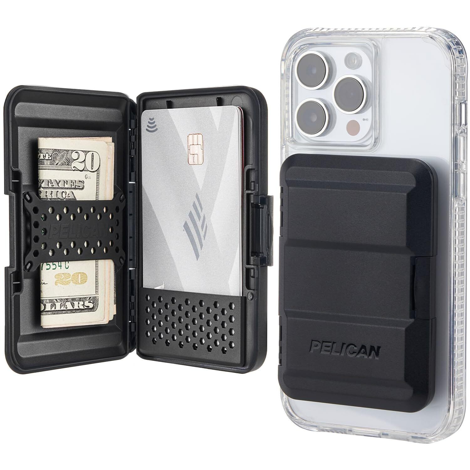タフ 築く, たくましい 磁石: 強力なマグネットを内蔵したiPhoneウォレット iPhone 16/15/14/13/12 Pro Max用の磁気ケースまたはApple MagSafeデバイスに簡単に取り付けられます。当社のiPhone用マグネットウォレットは、iPhoneの3倍の重さに対応しています!クイックリリースリッジ付きMagSafeカードホルダーの取り外し, 密閉されたスナップ・ラッチでアイテムを安全に保ちながら。ペリカンiPhoneマグセーフウォレット-頑丈なiPhone用磁気カードホルダー&男性用耐衝撃ハードケース財布!